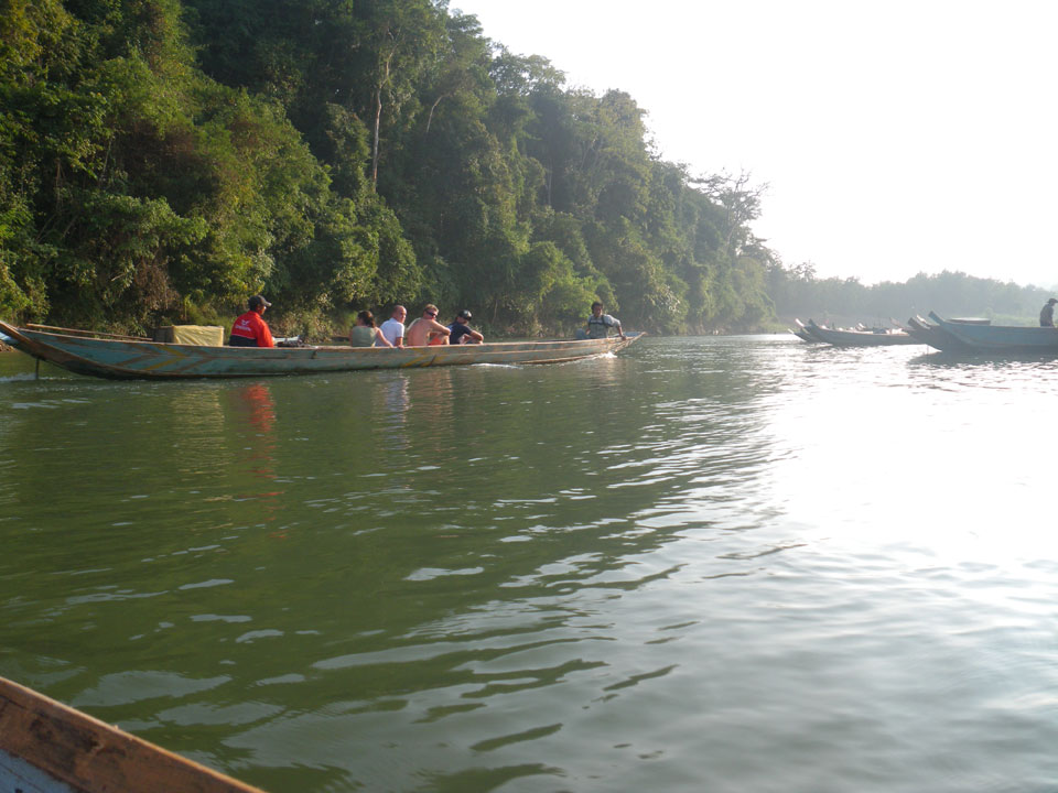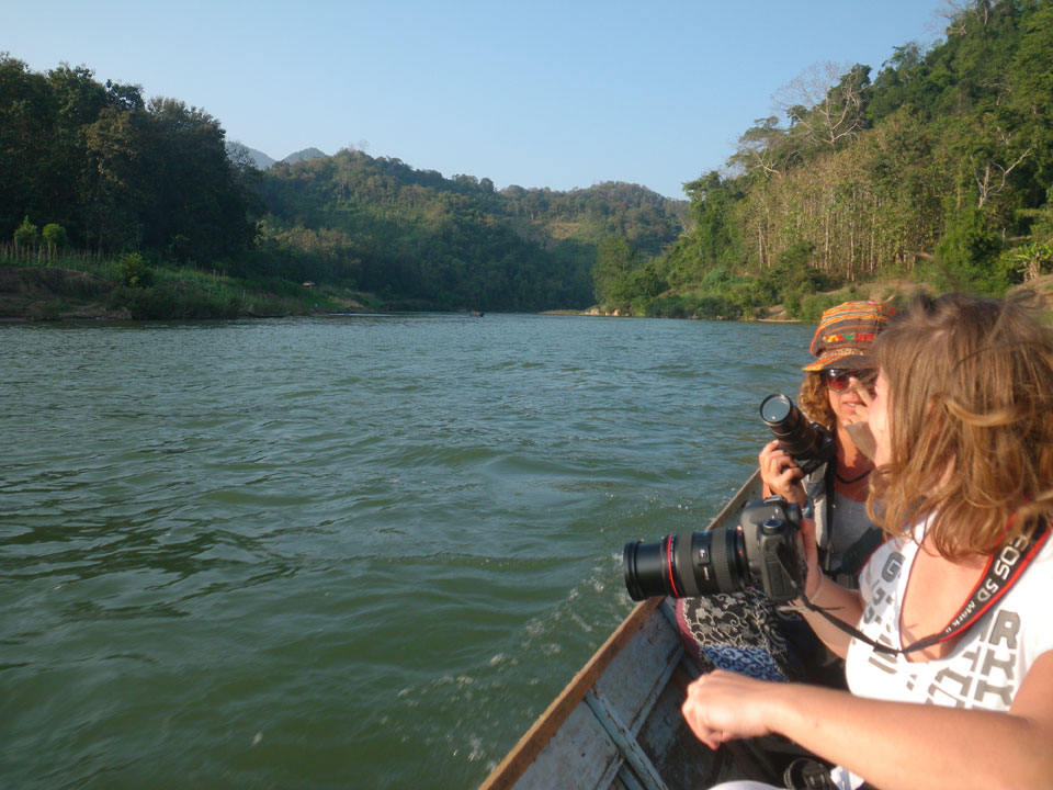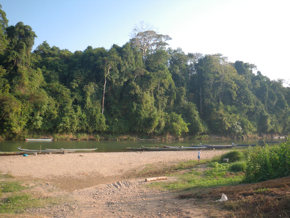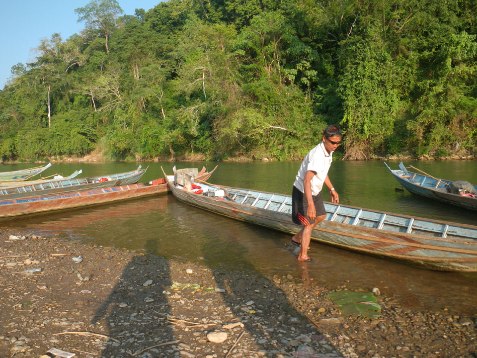 Die Fahrt war etwas länger. Eine Hölländerin hatte eine nagelneue >Canon 5DMK2 mit 24-70mm und noch weiterem teuren Glas. Sie fotografierte (semi-)professionell und hatte auch schon Austellungen. Fachgesimpel aber heute hatte ich nur die Pentax mit, hätte auch mal 3D Sachen zeigen wollen. Naja, wir waren da, erst mal 10K Bootstransport. Die Bootsfahrt im kleinen engen Holzboot war cool. Richtig Asien!