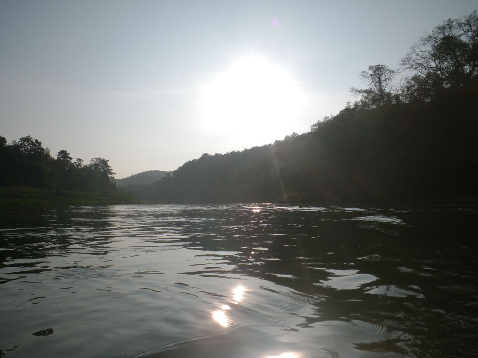 Wir waren gegen 17:30 die letzten aber unser Boot wartete. Schönes Twilight auf dem Rückweg und mit dem tuckernden Motor durch die Natur war das schon ein cooles Gefühl, hier in Laos.