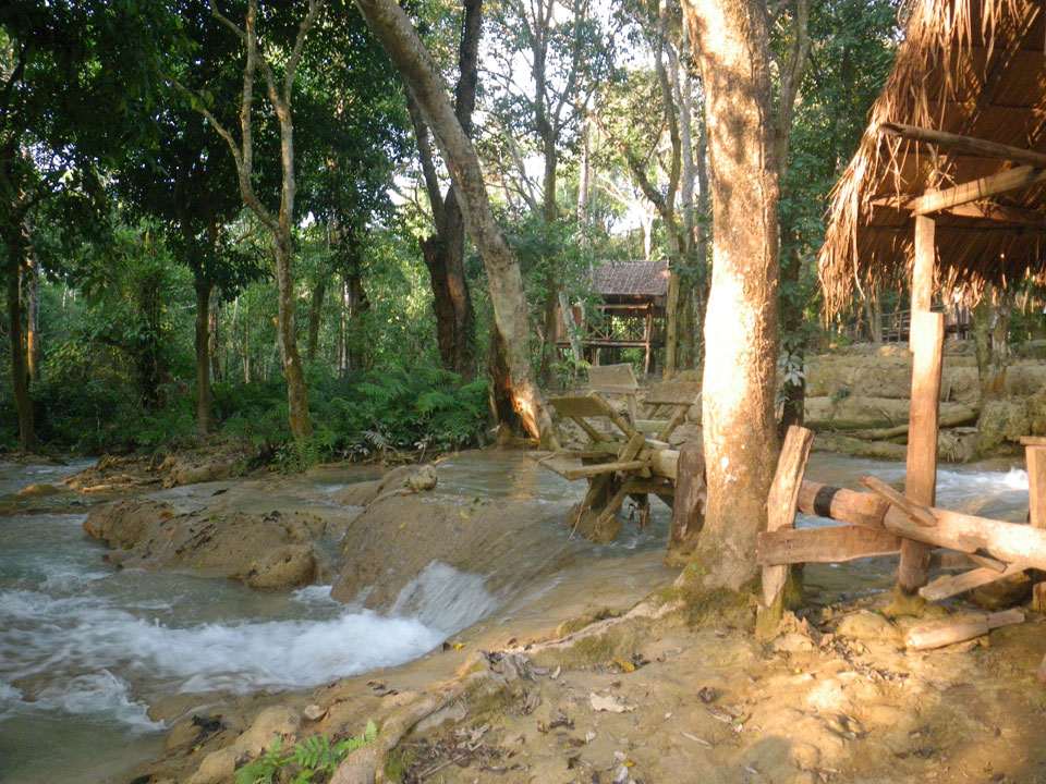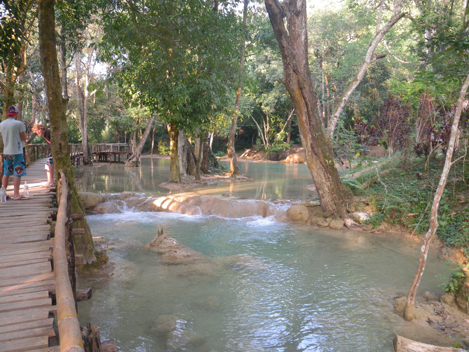 Auf dem Weg zum Zentrum wollten viele Tuktuk-Fahrer mich zum Wasserfall bringen – aber eben 150.000 KIP (€15), was für mich alleine zu viel war. Ich suchte also andere Leute. Ein paar wollten zun den Buddha Höhlen und eine zum kleinen Wasserfall. Ich fand dann doch 4 Leute, die um 3 zum Wasserfall wollten. Gut, jetzt war es um 2 und ich hatte eine Stunde Zeit.