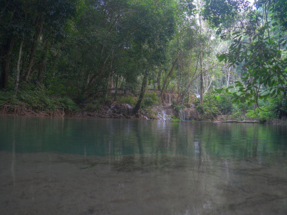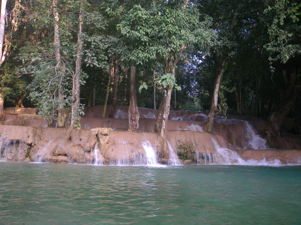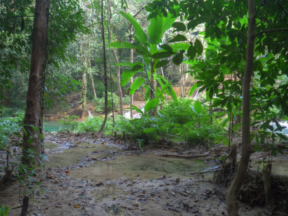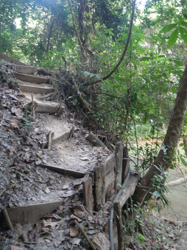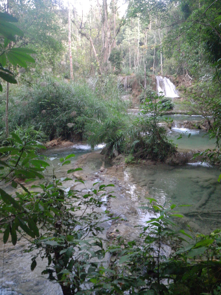 Dann 15K Eintritt zum Wasserfall. Es läppert sich. Auf den ersten Blick war ich etwas enttäuscht von den plätschernden Wasserfällchen. Ich srang mal in den Pool; kaltes, klares Wasser. Die anderen stiefelten los und ich holte sie dann auf einem kleinen Trek ein. Meine Flipflops mit Schlamm rutschen beidseitig gut. War ganz nett – richtig Natur und am Ende noch viele Stufen. Eine nette Umgebung, irgendwie bin ich aber verwöhnt, denn eine fand das soo super, dass ich es eigentlich nicht nachvollziehen konnte. Ich freute mich aber auch.