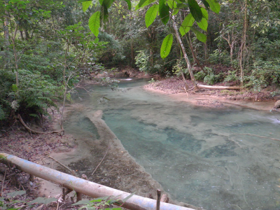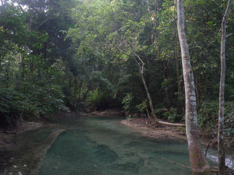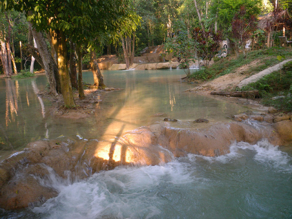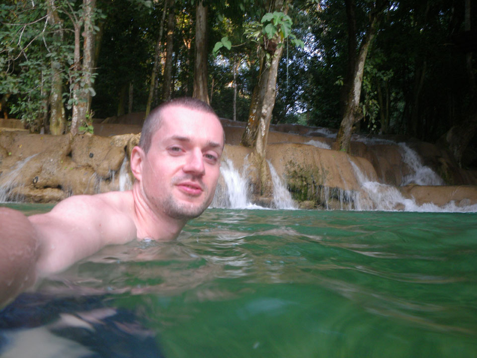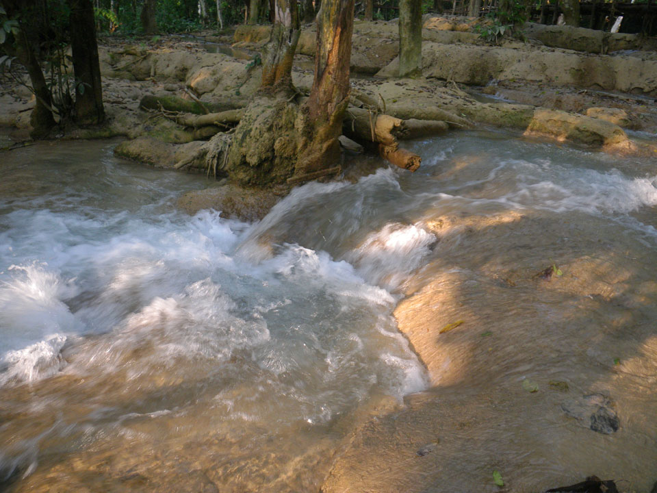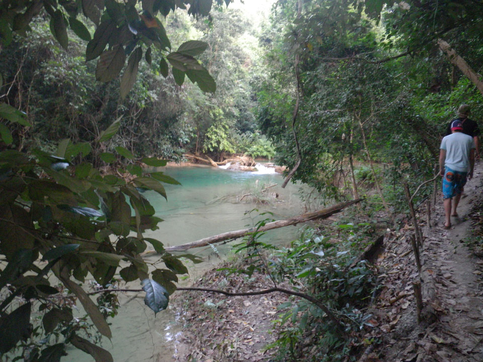 Dann 15K Eintritt zum Wasserfall. Es läppert sich. Auf den ersten Blick war ich etwas enttäuscht von den plätschernden Wasserfällchen. Ich srang mal in den Pool; kaltes, klares Wasser. Die anderen stiefelten los und ich holte sie dann auf einem kleinen Trek ein. Meine Flipflops mit Schlamm rutschen beidseitig gut. War ganz nett – richtig Natur und am Ende noch viele Stufen. Eine nette Umgebung, irgendwie bin ich aber verwöhnt, denn eine fand das soo super, dass ich es eigentlich nicht nachvollziehen konnte. Ich freute mich aber auch.