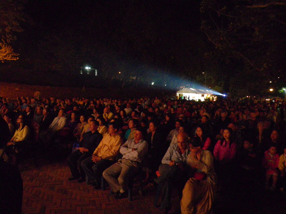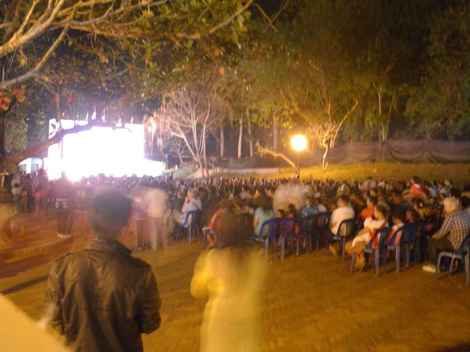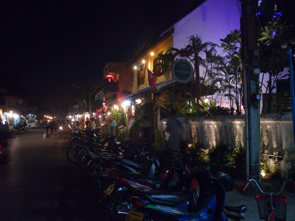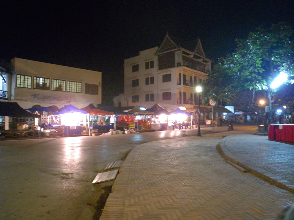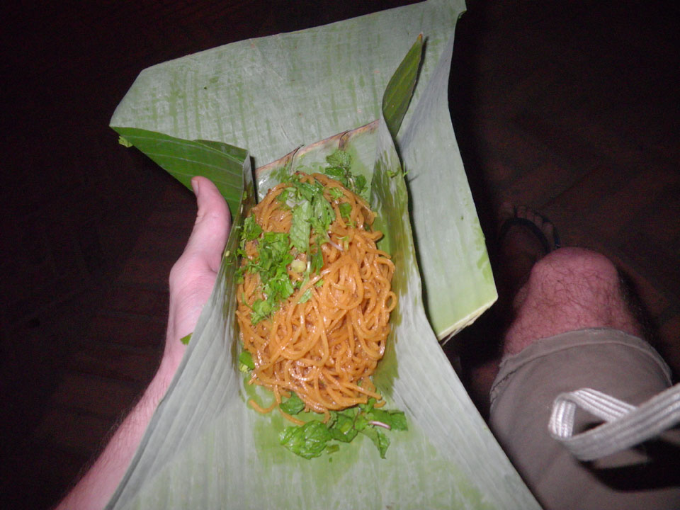 Am Ende waren wir wieder im Zentrum, 25K für die Fahrt – bei 5 Leuten eben ganz günstig. Ich kaufte ein paar Nudeln im Palmblatt und mampfte die, während das 1. Luang Prabang Filmfestival eröffnet wurde.