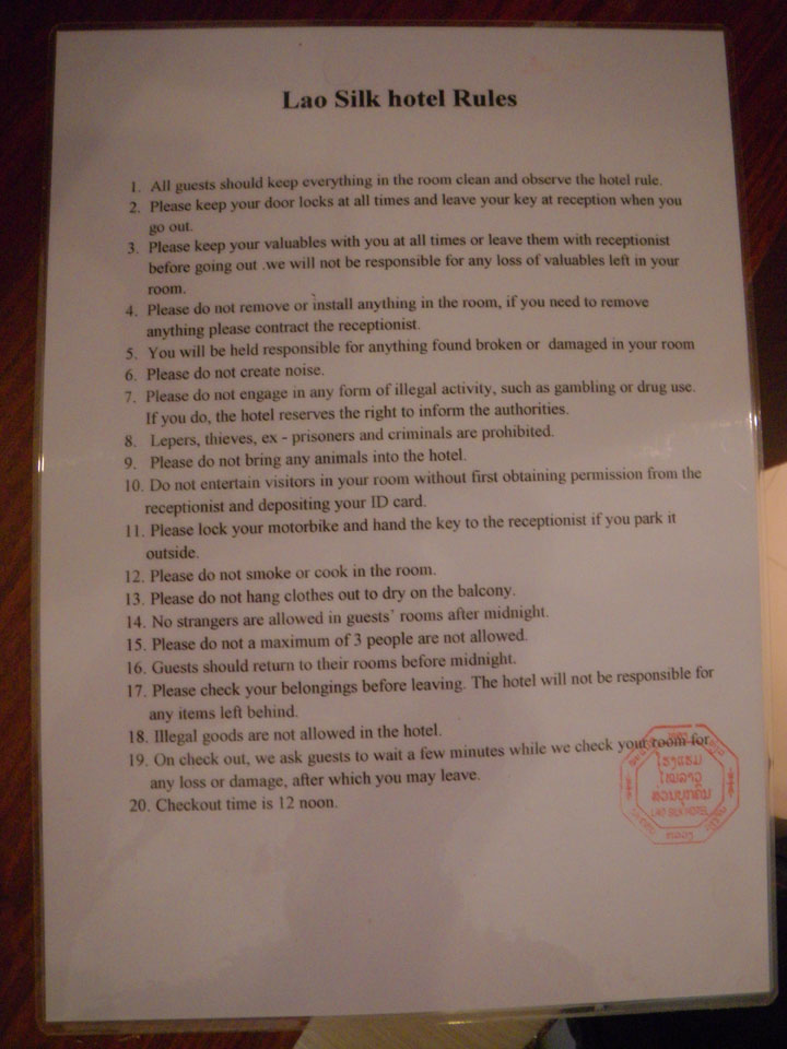 Die Rezeption meinte, dass ich beim Auschecken um 1 ganze 10.000 KIP zahlen müsste – ’nen Euro. ich war aber schon wach, erneut nur ca. 5h Schlaf, packte meine Sachen und war dann unten.