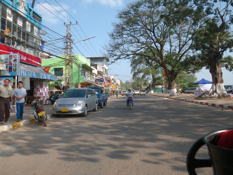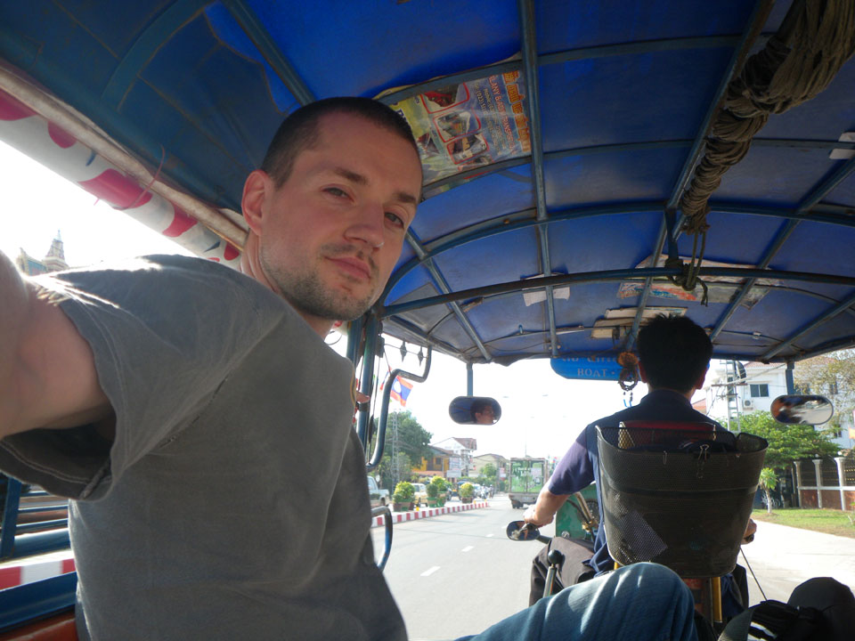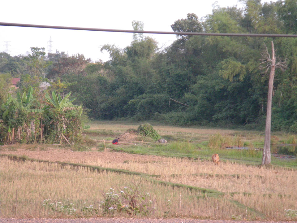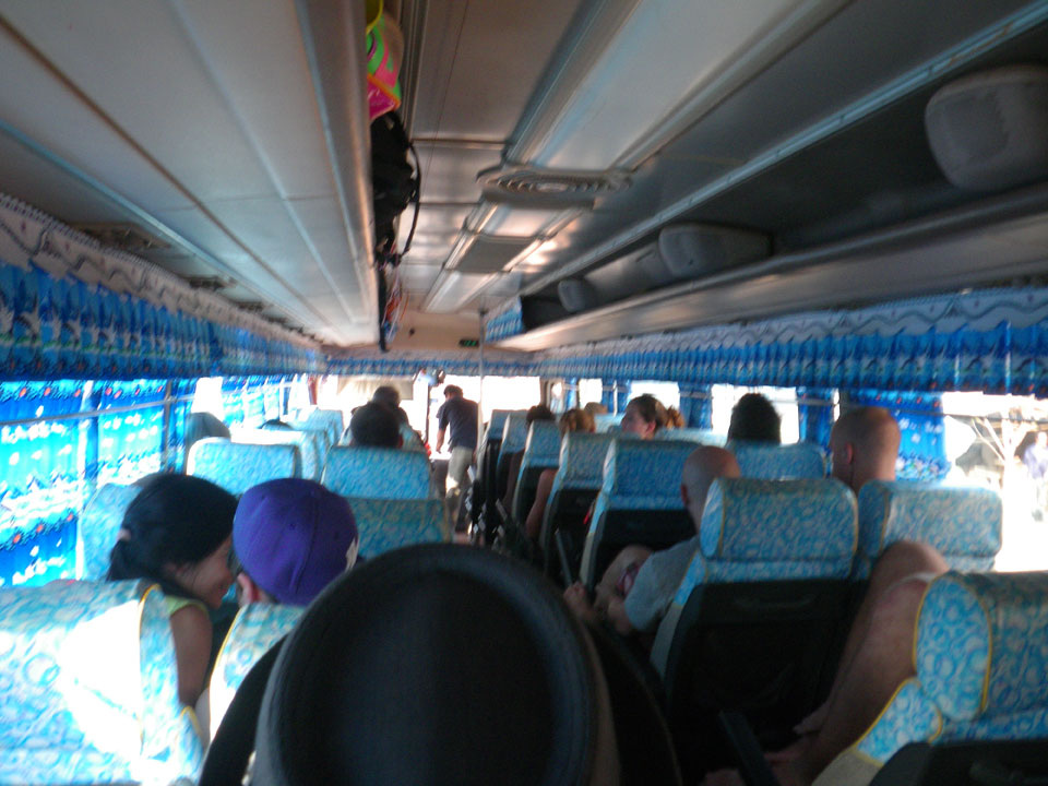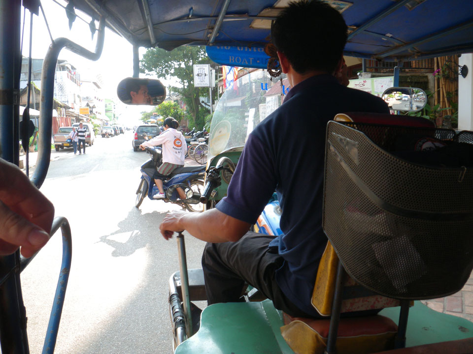 Ein kleines Frühstück unten und nochmal 8.000 KIP für eine Stunde Internet hingeblättert. Da sass ich, schaute in’s Mantis und kopierte einen build auf den Panda DS. Um 13:30 sollte ich für den Bus abgeholt werden. Vorher holte ich mir noch etwas Proviant aber niemand holte mich ab. Nach halb zwei fragte ich, ob das alles OK sei. man versicherte mir, dass ich abgeholt werde. Nach um 2 aber dann rief der Rezetionist mal an. Der Bus hatte Probleme. Dann 14:45 kam einer mit ’nem Tuktuk, er telefoniere etwas aufgeregt und ich fuhr los. Die Fahrt ging aus der Stadt, sodass ich schon dachte, er fährt mich direkt nach Vangvieng. Dann am Straßenrand wartete ein Bus, ich war der letzte Gast.