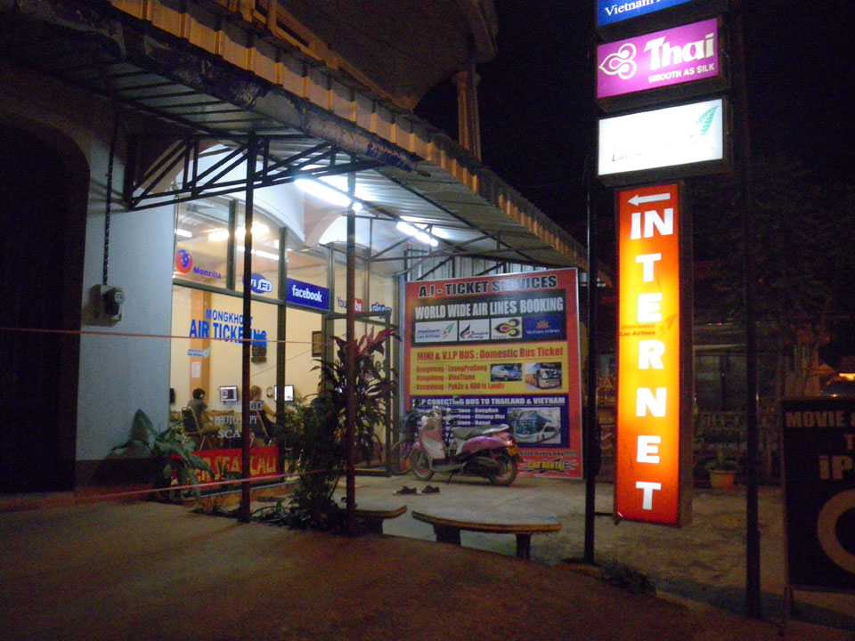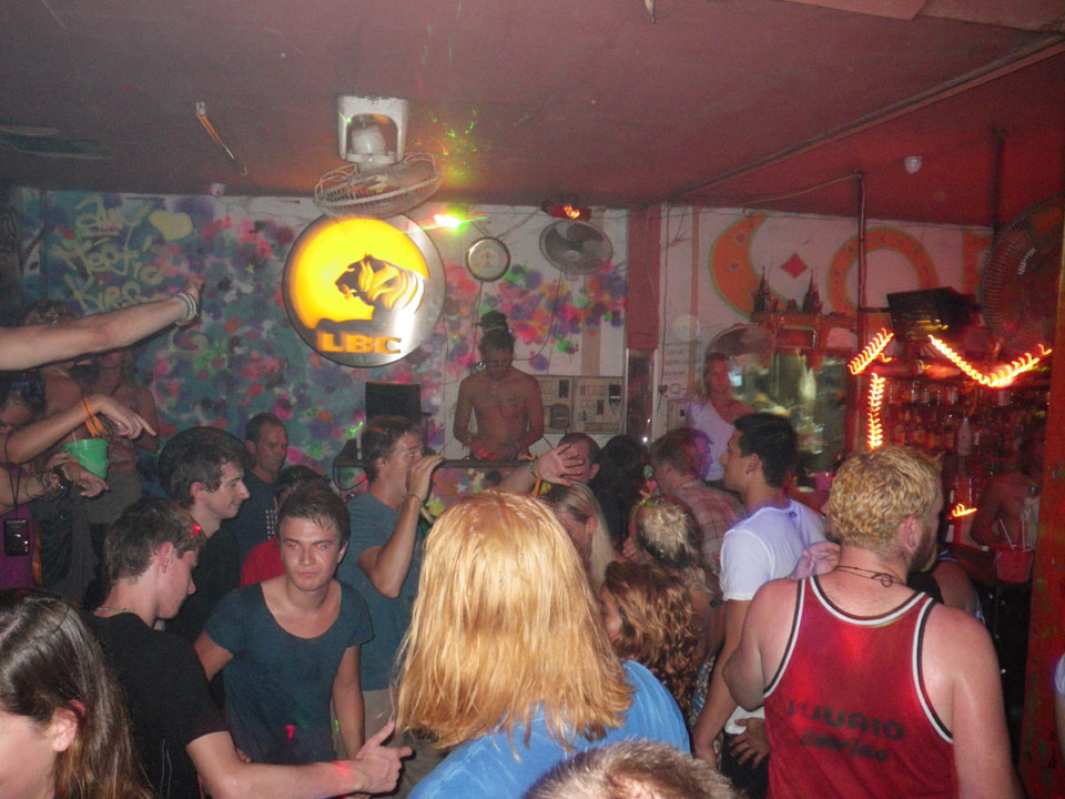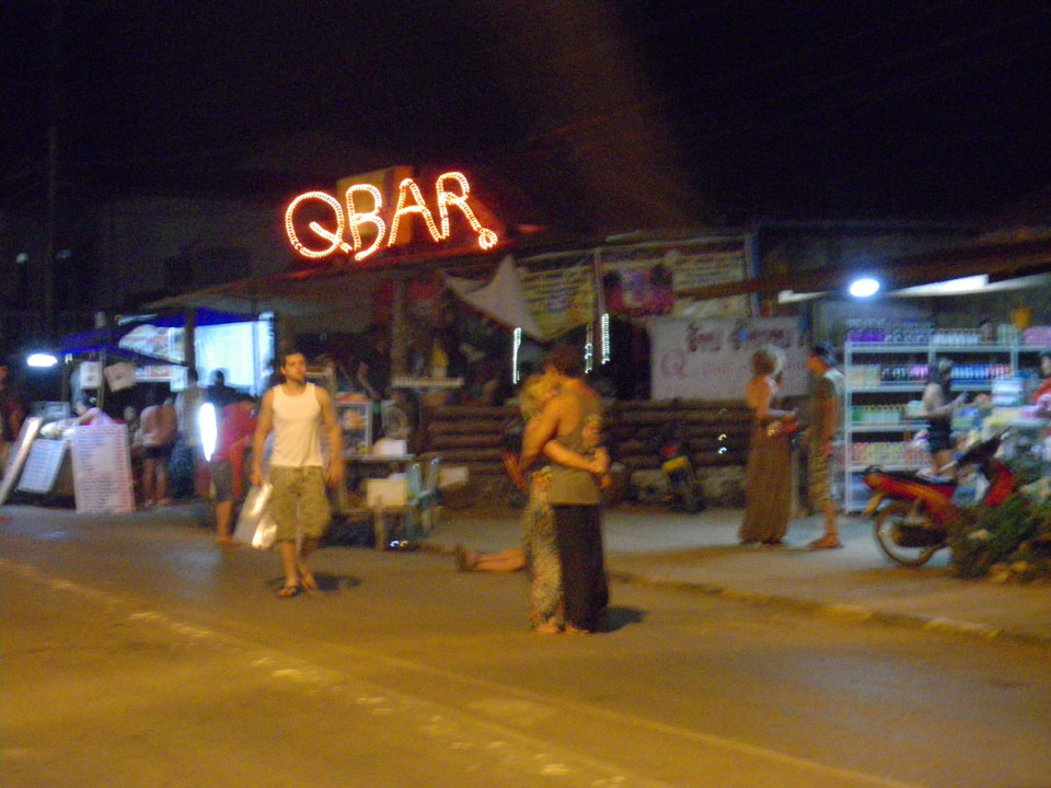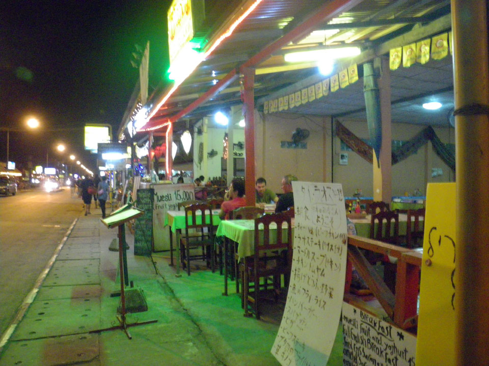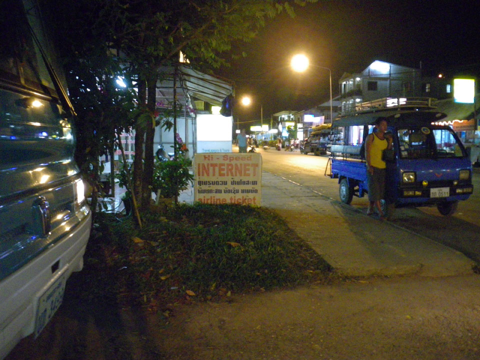 Nach 0:30 ging’s über die Brücke zum Smile Bar. Die Sandwich und Pancake Verkäufer standen da auch Spalier – dahinter wecheln Internet und Gästehäus ab, mit Touri-Firmen.