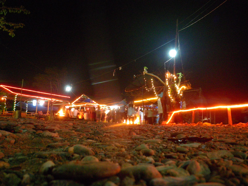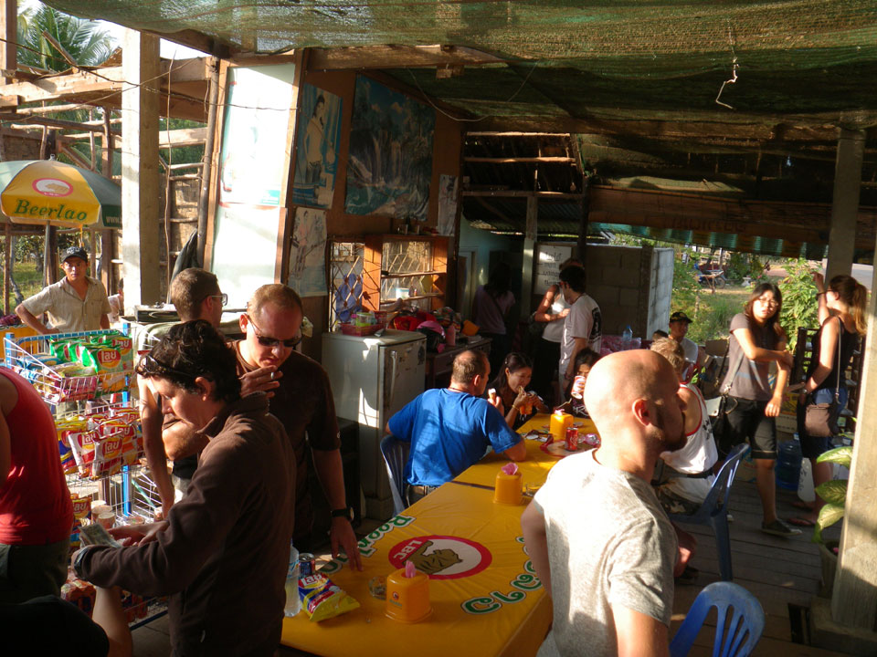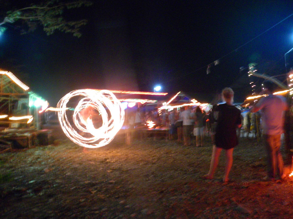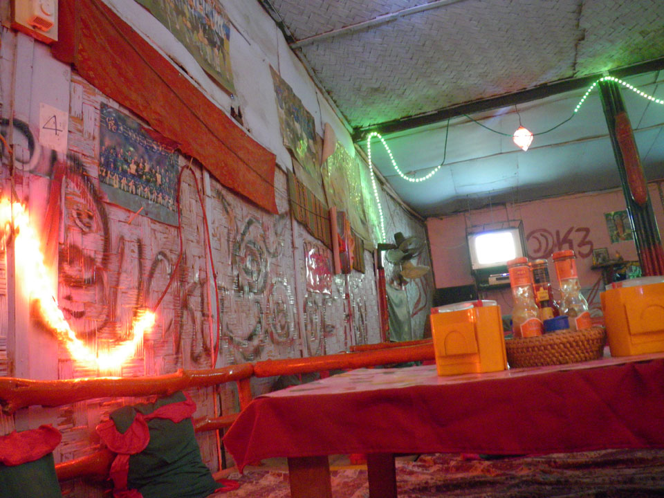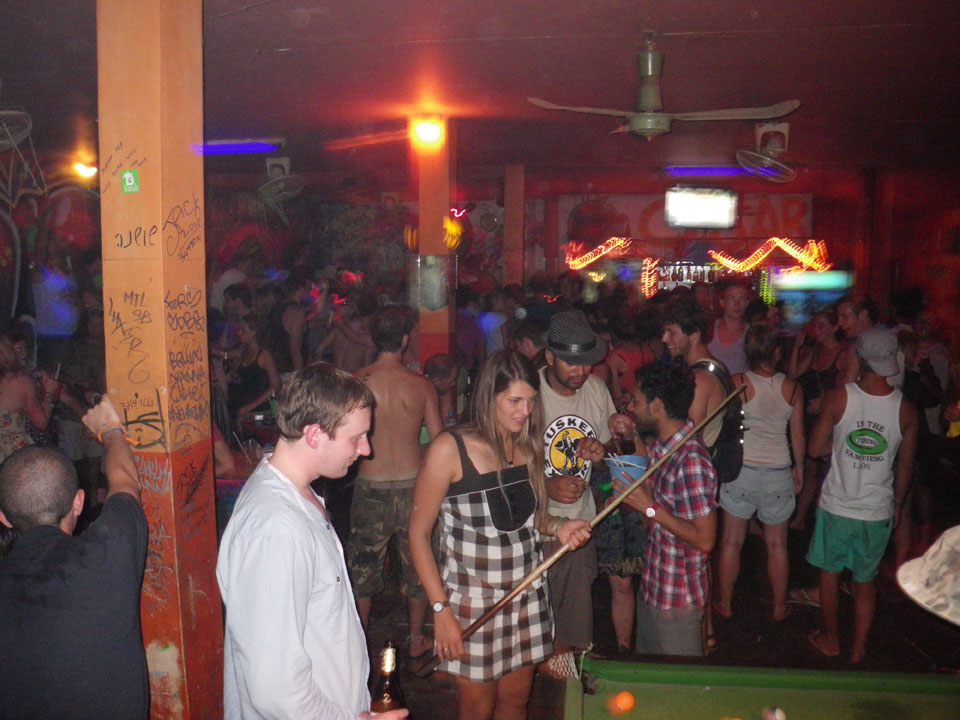 Nach 0:30 ging’s über die Brücke zum Smile Bar. Die Sandwich und Pancake Verkäufer standen da auch Spalier – dahinter wecheln Internet und Gästehäus ab, mit Touri-Firmen.