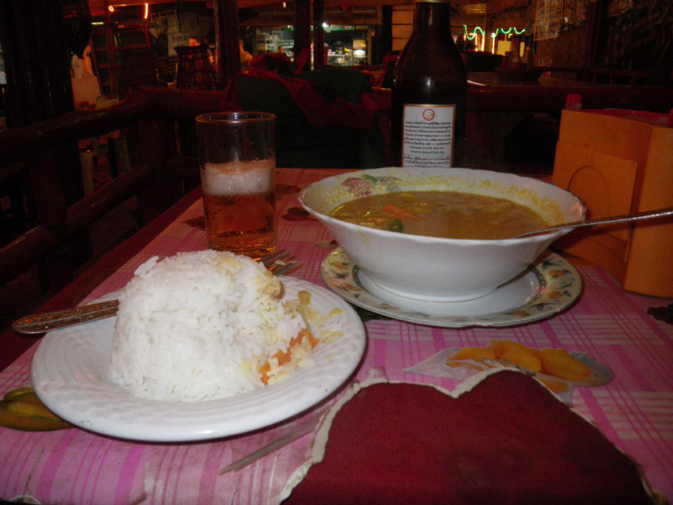 Ich ging erst mal was essen. Ein Yellow Curry Chicken und ein Bier. Im Restaurant wurde immer der gleiche Song gespielt – in Schleife. Das ist eben etwas anders hier. Anders war auch das Spezialmenü mit Hanf, Pilzen und Opiumsachen. Gar nicht mal so teuer…