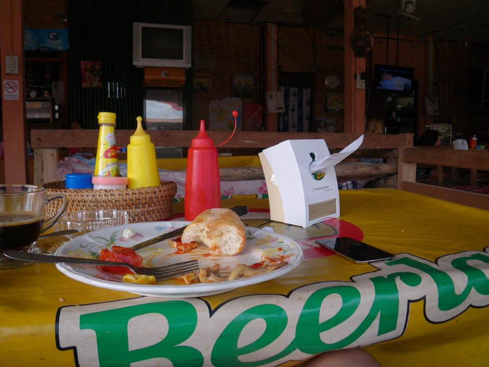Gut ausgeschlafen ging ich in ein Restaurant mit free WiFi zum Frühstück. Eipaar Telefonate per Skype, während im Hintergrund natürlich auch hier „Friends“ lief.