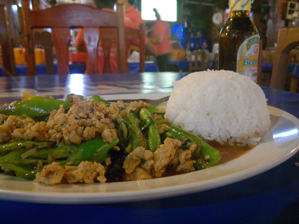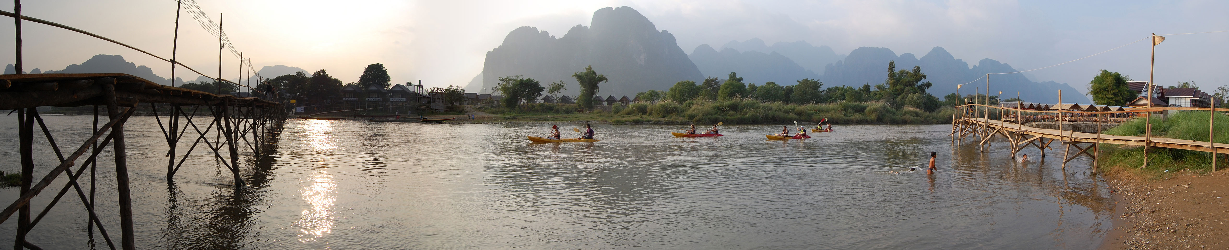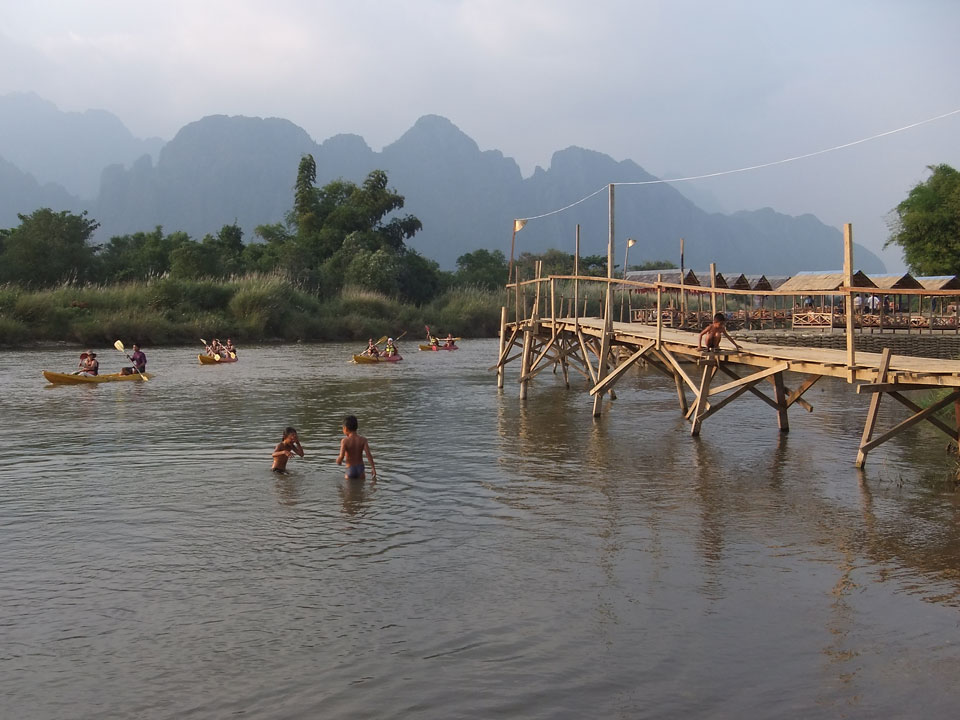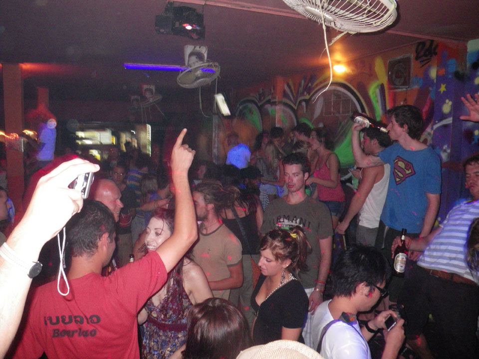 Im Zimmer meditieren, spielen, und dann um 11 was essen gehen. Scharfes Schwein mit Reis. Alles gut und günstig hier. Für den Abschluss die QBar, wie gestern. Leute gaben mir Whisky oder ein halbes Bier. Ich habe nun den Ort gesehen und kann mich um intessantere Sachen kümmern. Tubing muss wohl sein.