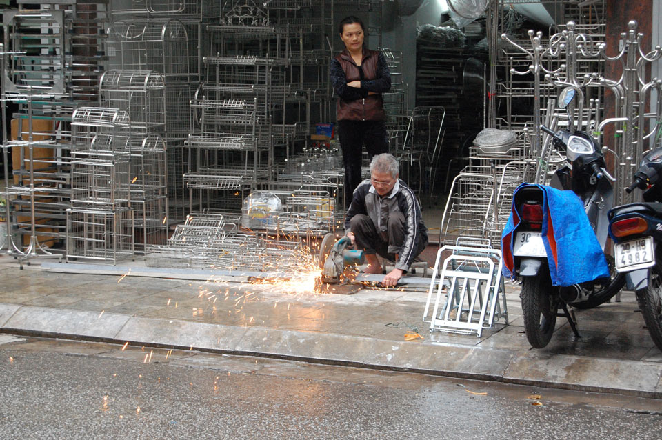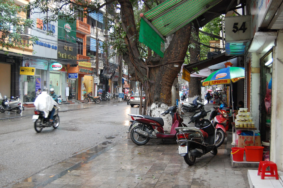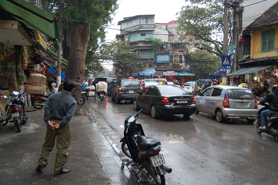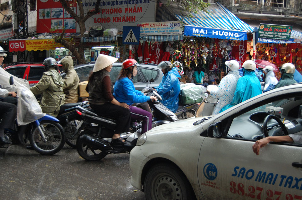 Das Wetter nieselig und auch recht frisch. Ich drehte eine Runde, kaufte mir Kuchen und wartete, dass der nieselregen aufhörte, was aber nicht passierte. Es war interessant, die nStrom der Mopeds zu beaobachten, wie sich deren Wege manchmal kreuzen. Ab und zu passiert schon mal was aber bei diesen haarsträubenden Manövern ist das auch kein Wunder.