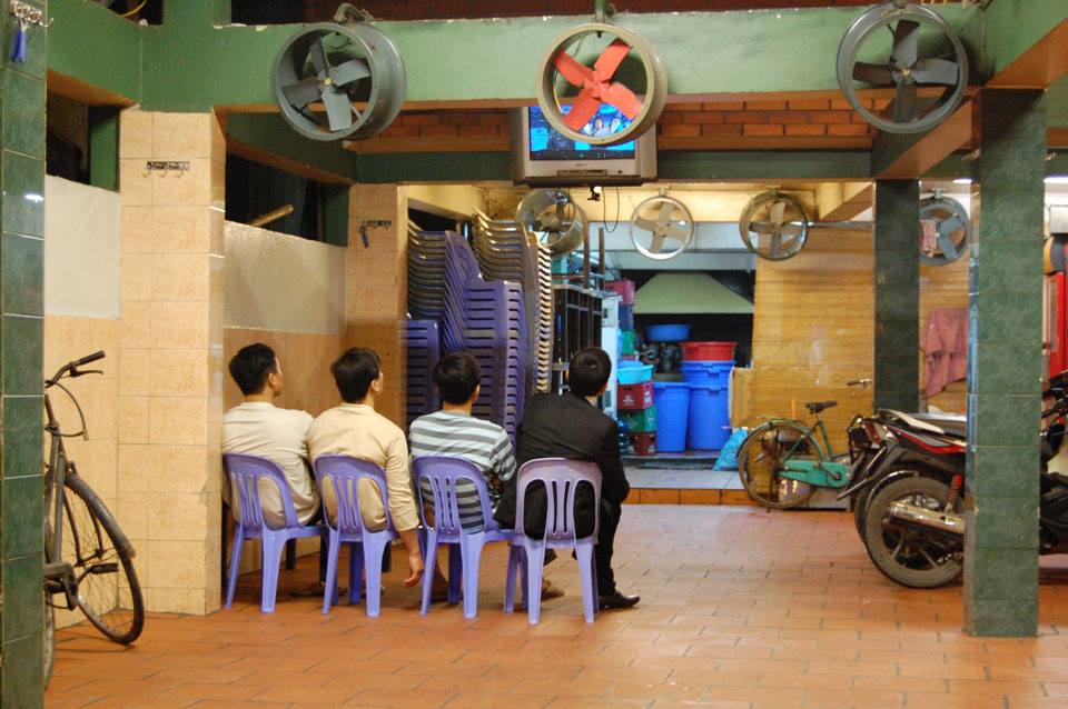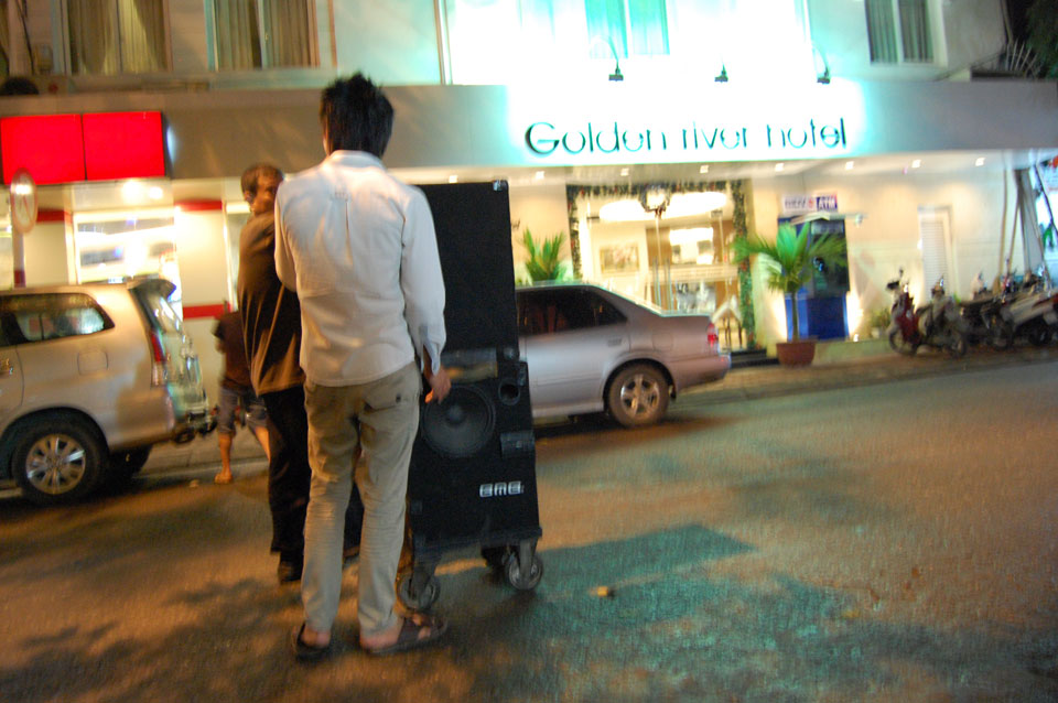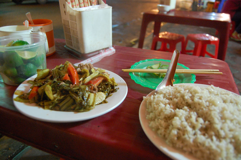 Bis Abends saß ich so da, ging dann wieder was essen und etwas in der Gegend umher. Ich saß bei Fried Rice und Beef(?) , da rollten zwei Jungs Lautsprecher auf der Straße entlang, einer sang. Kurze Unterhaltung hier. Das Fastfood Restaurant „Lotteria“ war leer, auf der Straße gibt’s alles Mögliche zu essen.