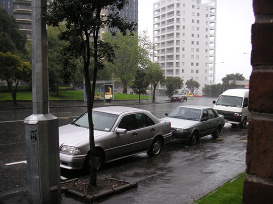 Ich bin also gegen Nachmittag los und sprintete zu Foodtown, dem größten Supermarkt in der Nähe. Der steht aber nicht gerade um die Ecke, wenn auch in Sichtweite. Ich muss aber eine Hügel ‚runter und das dauert. Es regnete heftig und ich kam dann gut eingeweicht dort an. Alles halb so wild aber manche sind ja so viel cooler hier: die scheint das alles kein bisschen zu kümmern und spazieren ganz gemütlich ohne Schirm und Hut daher.
