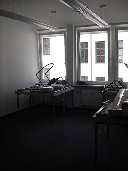Im Briefkasten des Büros lag ein Zettel, dass die Post 3 Mal (in 30 min Abständen) da war, die Pakete aber nicht abliefern konnte. Morgen sollten wir sie slebst abholen. Dann riefen die Putzmänner an, wollen früher kommen – OK. Sobald sie eingetroffen waren, verschwanden wir. Mittagessen (BK) in der Sachsenallee. Zwei 19“er gingen beim Mediamarkt mit.