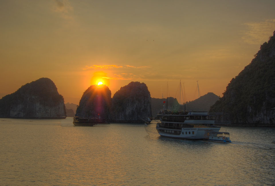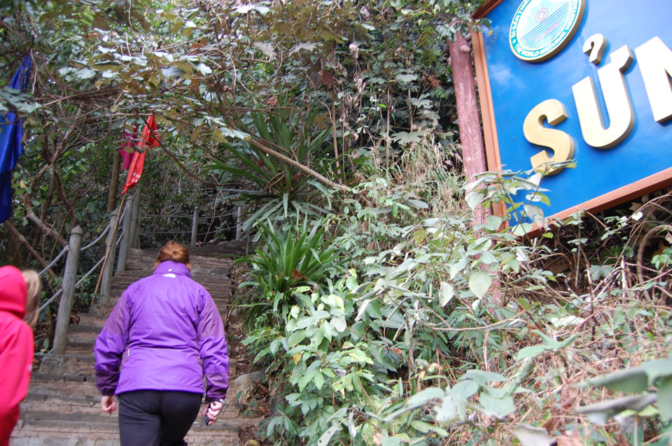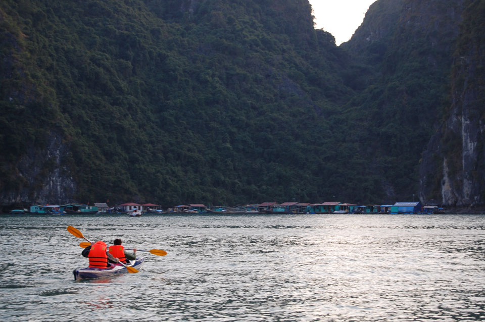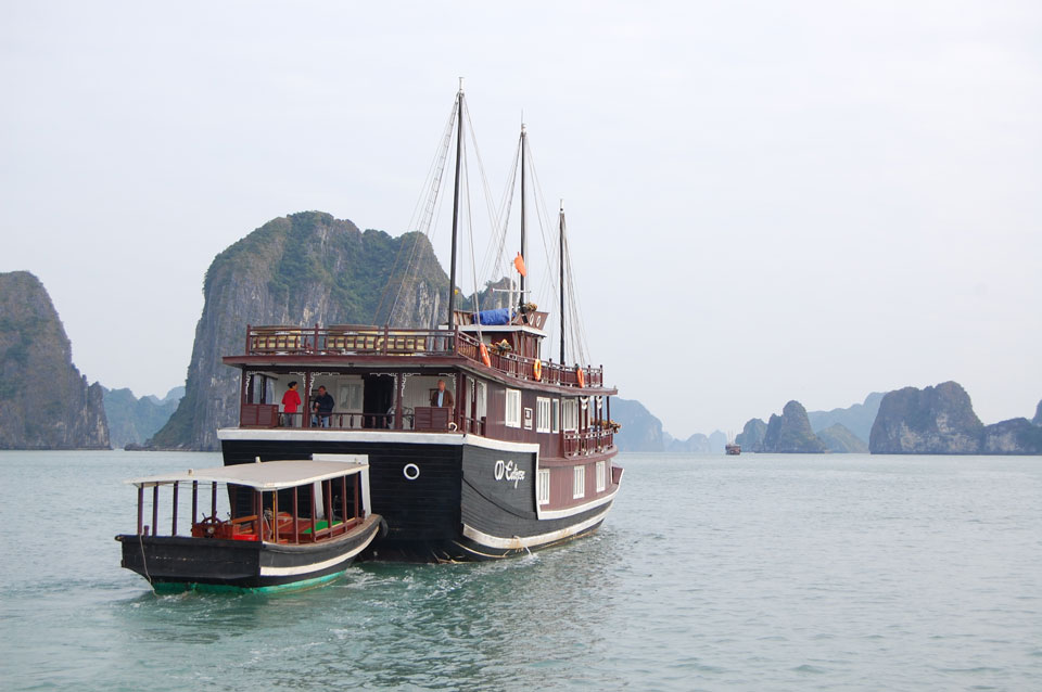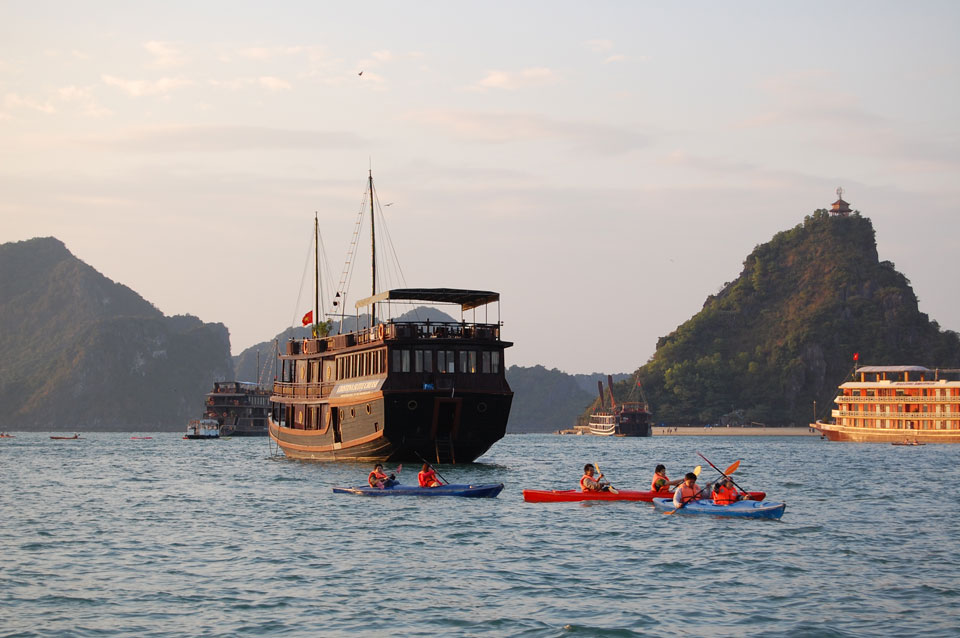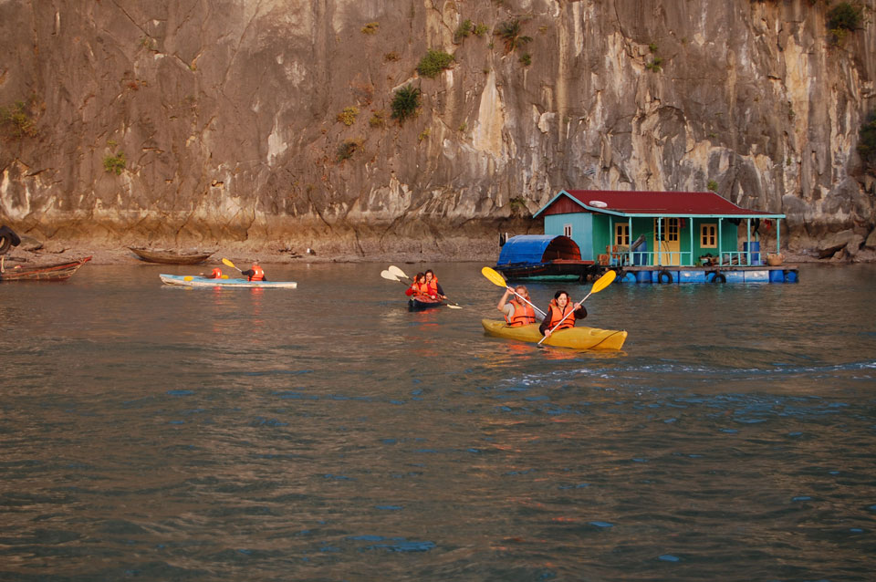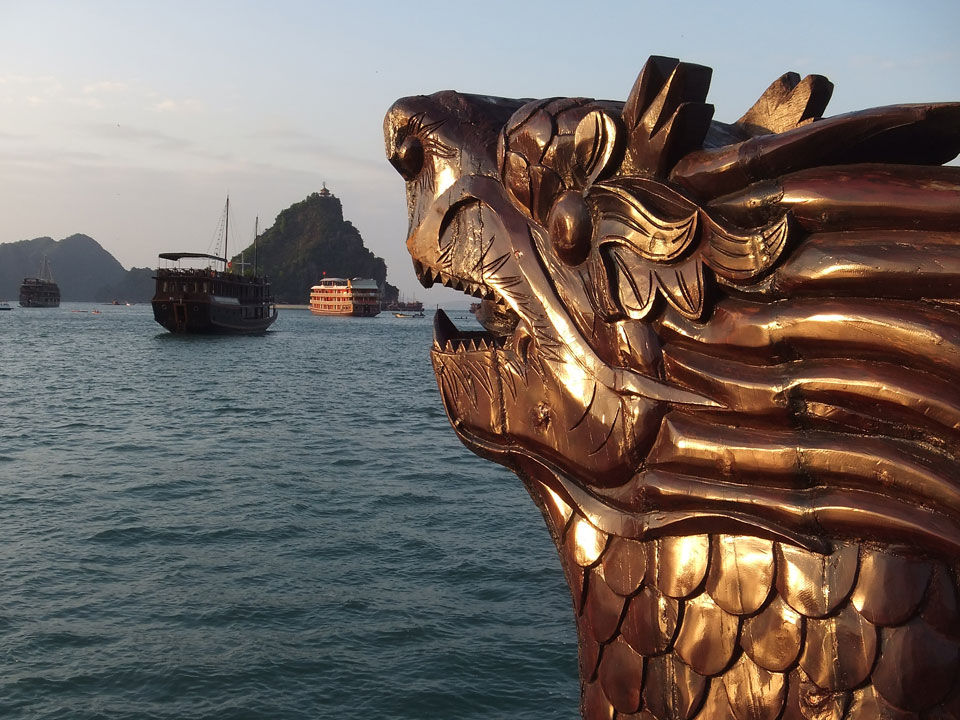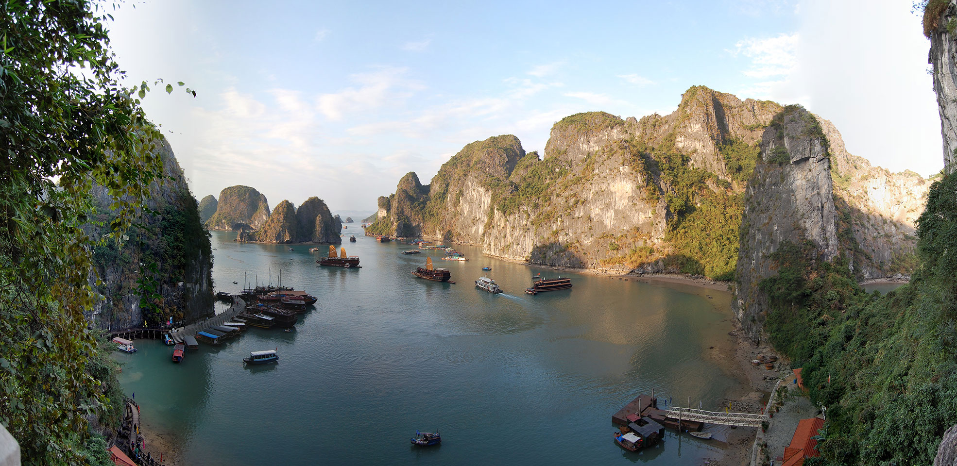 Nachdem der Bus alle eingesackt hatte, war der Bus nicht mal halb voll. Das Wetter heute war sehr kalt und bedeckt. Ohne Heizung im Bus zog ich doch zwei Pullover an. Am Zwischenstopp kam ein heisser Kaffee genau richtig und Cashew Nüsse waren auch OK. In Halong Bay gingen wir auf’s Boot. Das schöne Zimmer teile ich mit einem Schweizer.