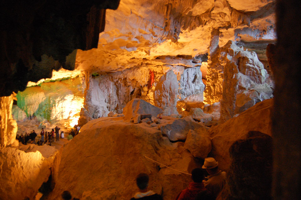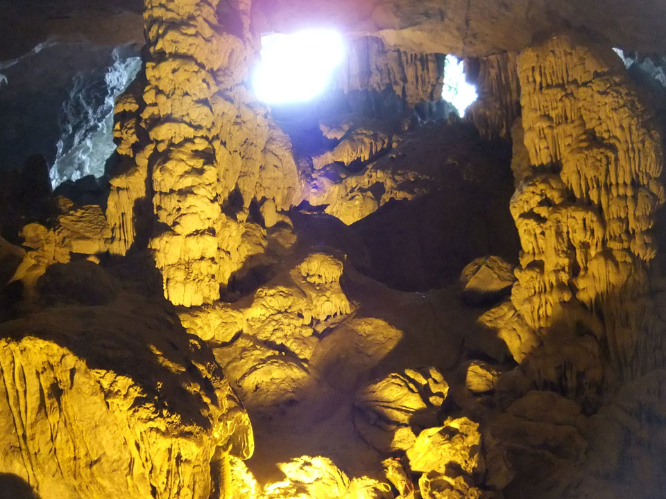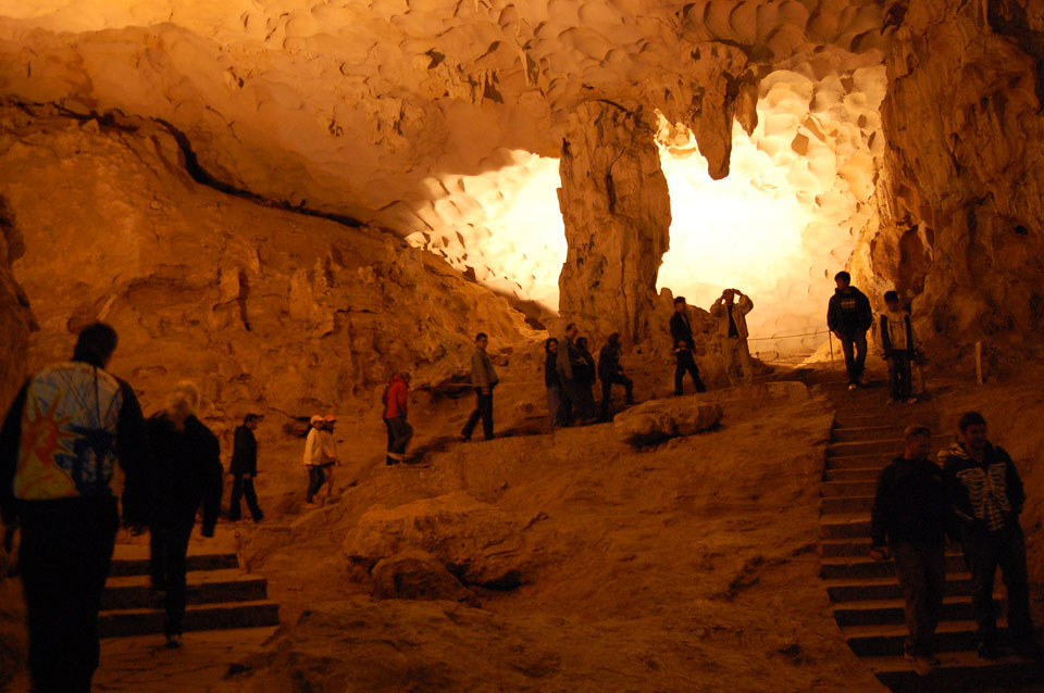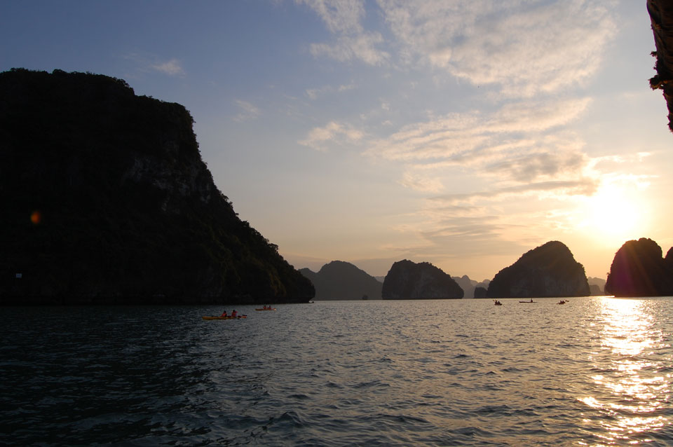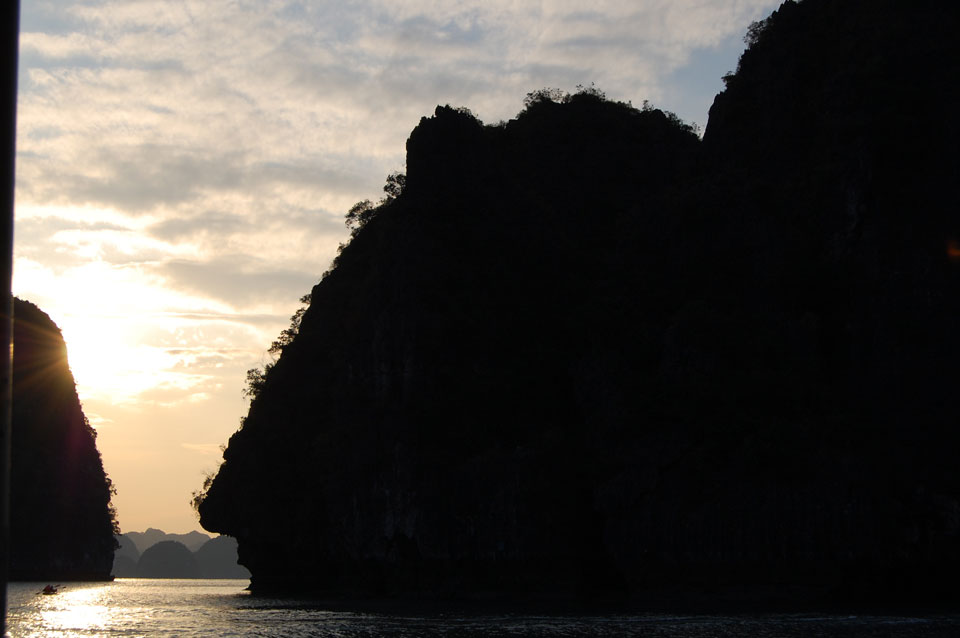Der erste richtige Stopp war eine Höhle. Von außen sah sie nach wenig aus aber drinnen war sie bestimmt die größte Höhle, in der ich bis jetzt war. Schön beleuchtet testete ich auch die 3D Fuji. Alles schön aber das Kayaking in der Gegend ließ ich weg. Wir sollten morgen noch eine Chance zum kayaking bekommen. Ich genoss den Sonnenuntergang und war dann auch beim Abendessen zurfrieden. Es hätte immer etwas mehr Essen sein können aber OK.