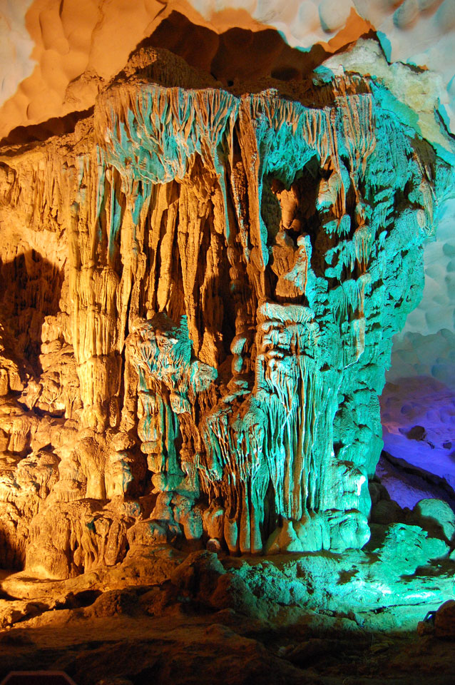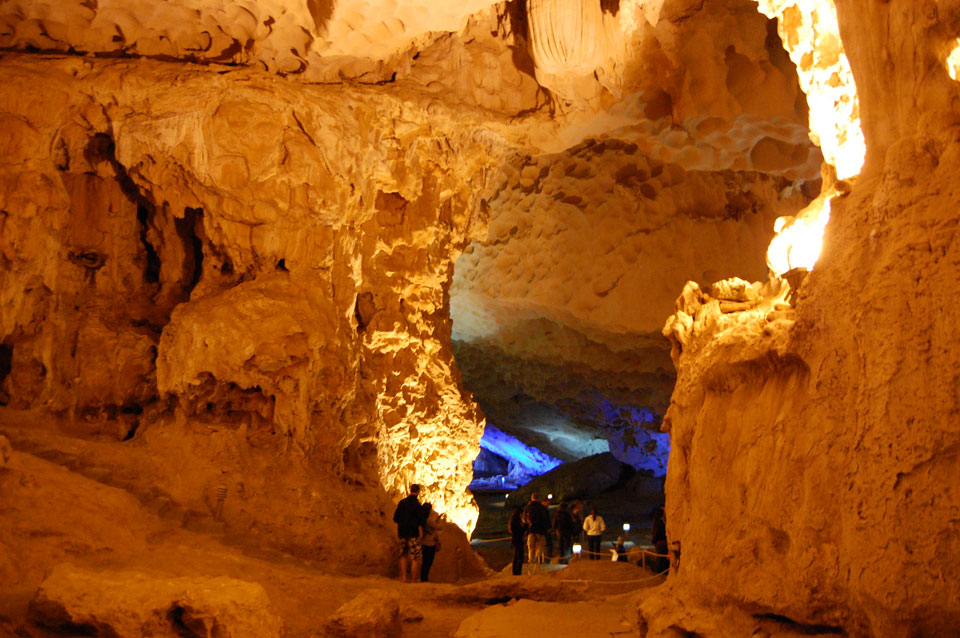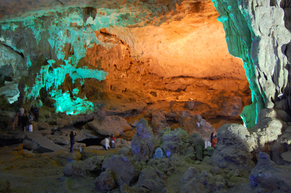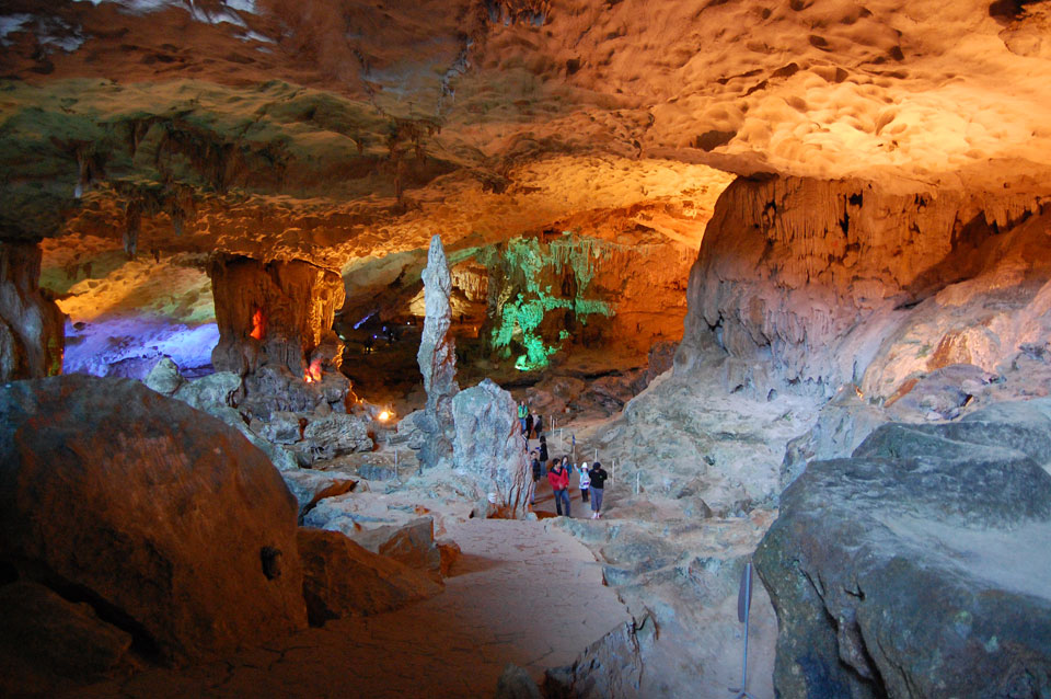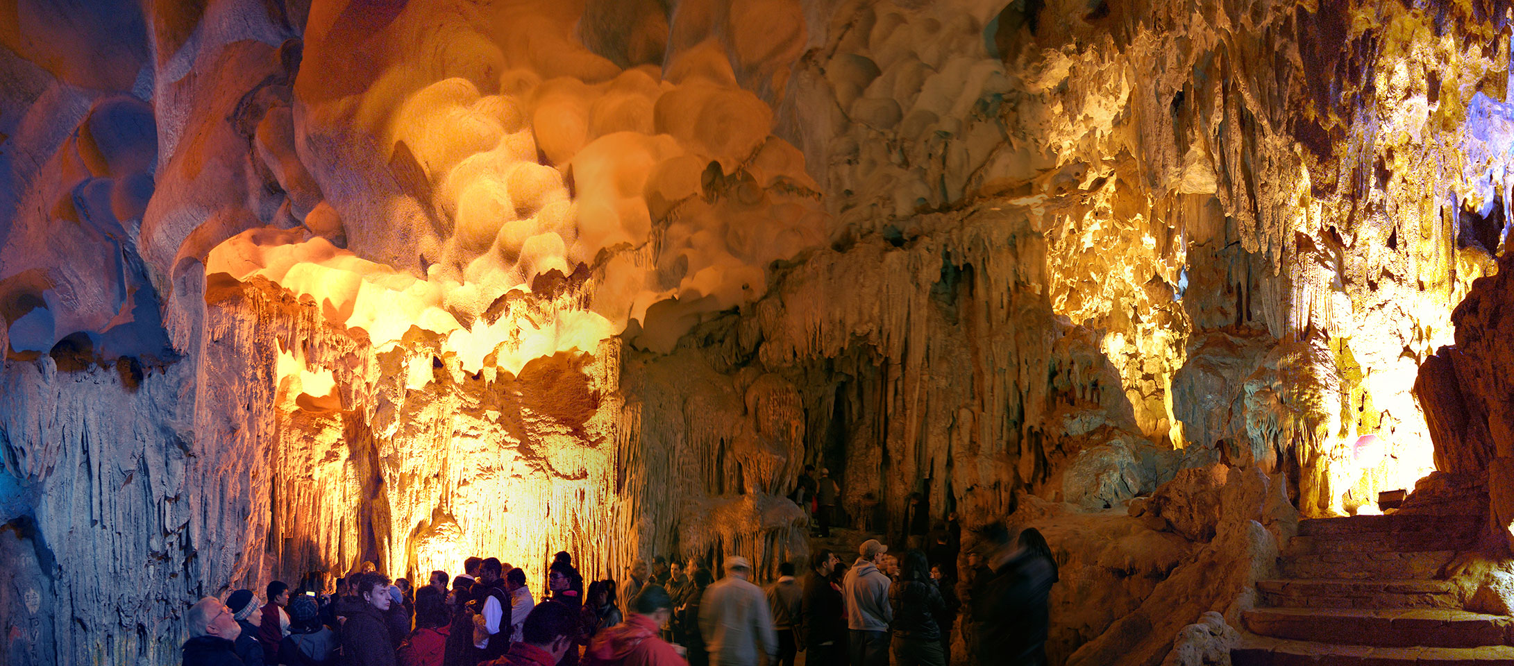 Der erste richtige Stopp war eine Höhle. Von außen sah sie nach wenig aus aber drinnen war sie bestimmt die größte Höhle, in der ich bis jetzt war. Schön beleuchtet testete ich auch die 3D Fuji. Alles schön aber das Kayaking in der Gegend ließ ich weg. Wir sollten morgen noch eine Chance zum kayaking bekommen. Ich genoss den Sonnenuntergang und war dann auch beim Abendessen zurfrieden. Es hätte immer etwas mehr Essen sein können aber OK.