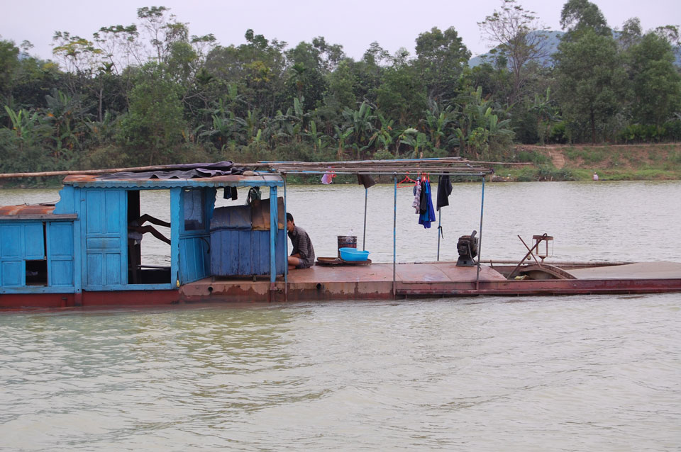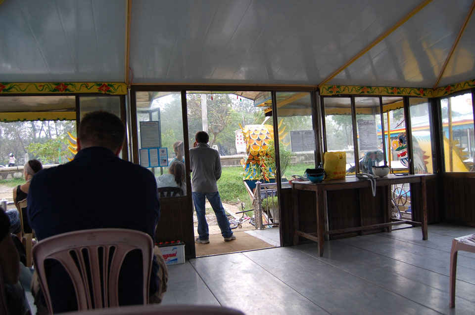 Um 8:15 kam ein Anruf, ob ich „ready“ sei. In 5 Minuten, ja – Dusche, kleines Frühstück und dann brachte mich ein Moped zum Touristenboot. Es nieselte und der Himmel war bedeckt. Kein besonderes Wetter heute aber naja.