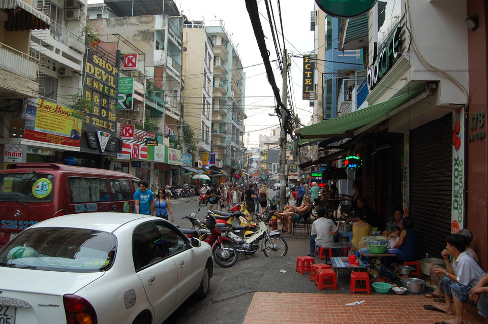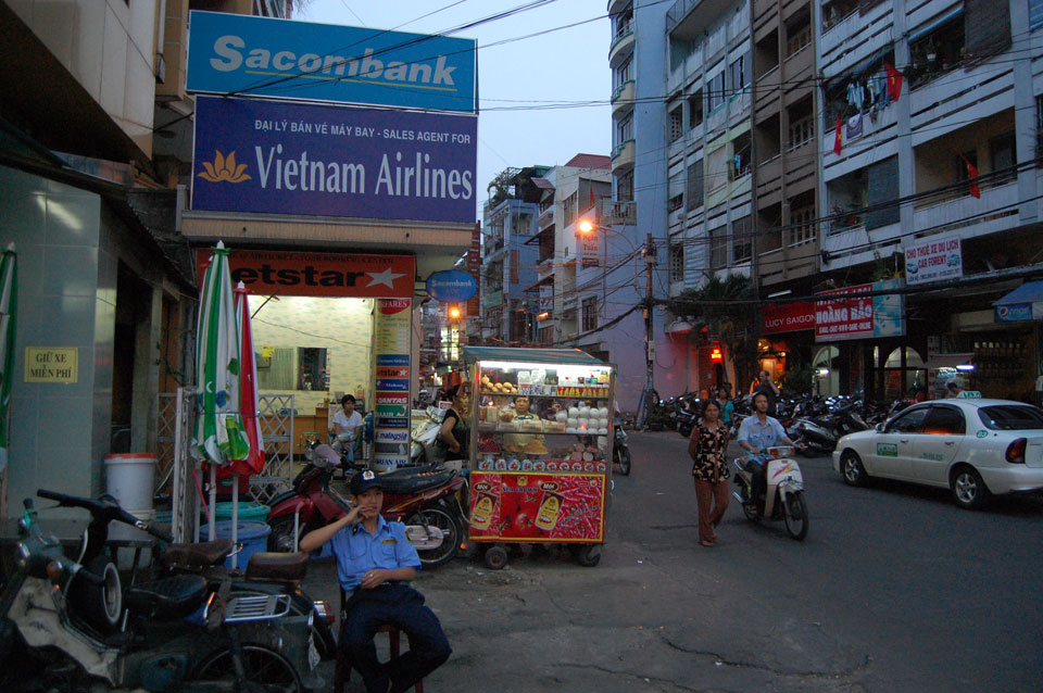 Ich zwang mich zum längeren schlafen. Das Hotel liegt ganz günstig: Läden und auch ein Café nebenan, wo ich frühstückte. So drehte ich eine Runde durch die Straßen hier Pham Ngu Lao und B Vien.