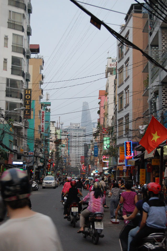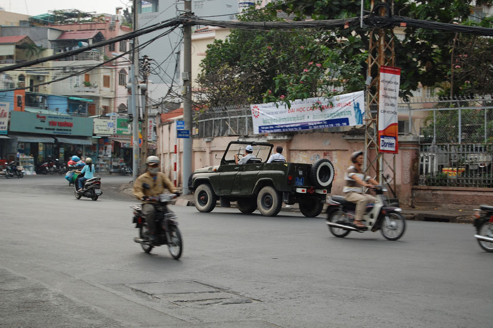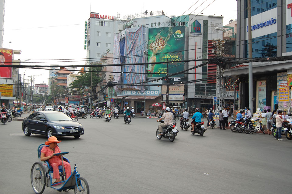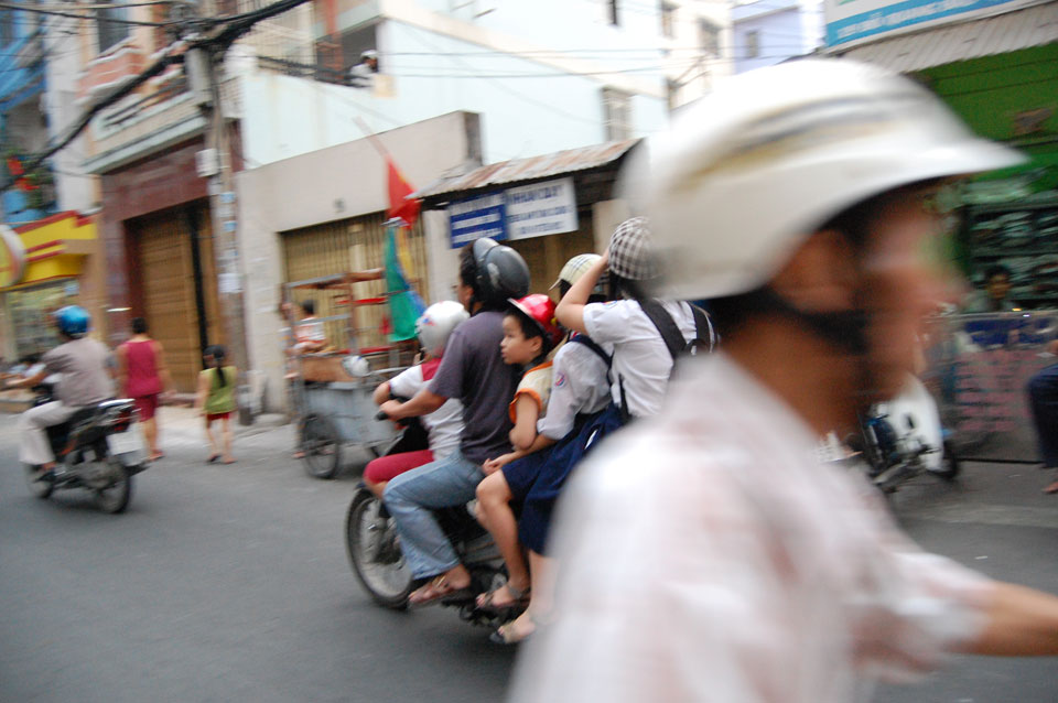 Unzählige Reisegeschäfte bieten Touren an. Ich sah, dass man direkt vom Mekong-Delta aus nach Kambodscha kommt, was ganz gut passen würde. Ich buchte aber erst mal für $4 die Cu Chi Tunnel Tour morgen, nur den halben Tag. Der neue Record auf dem Moped war heute wieder 5 Leute. Leider hatte ich die Camera zu spät oben.