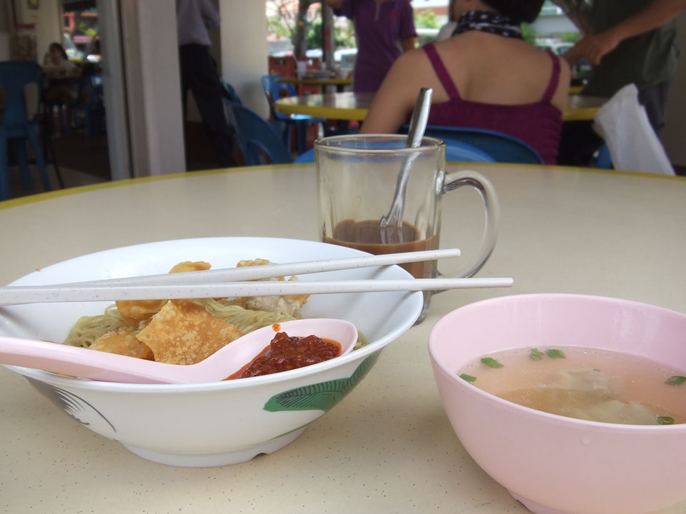 Ein paar Wonton Nudeln am bekannten Laden – groß = SGD 4 + Kaffee. Ich drehte eine Runde durch die Gegend. Heute sehr warm und still.