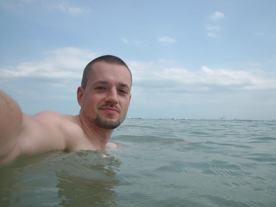 So ging ich an den Strand, um noch vor eventuellem Regen das Wasser zu sehen. Das vorerst letzte Mal baden hier in Südostasien.