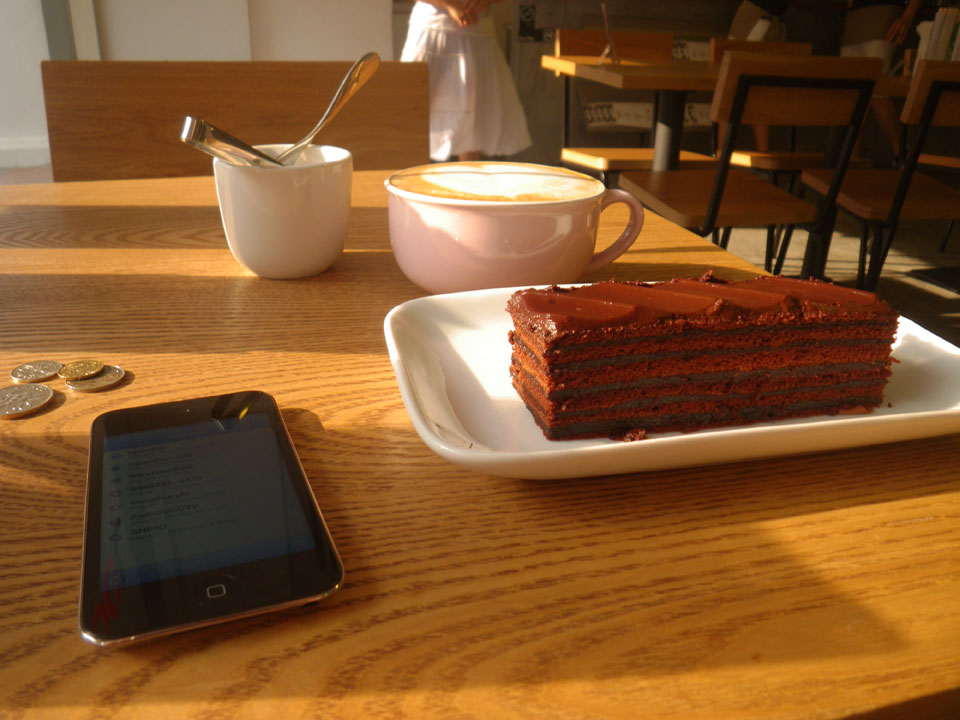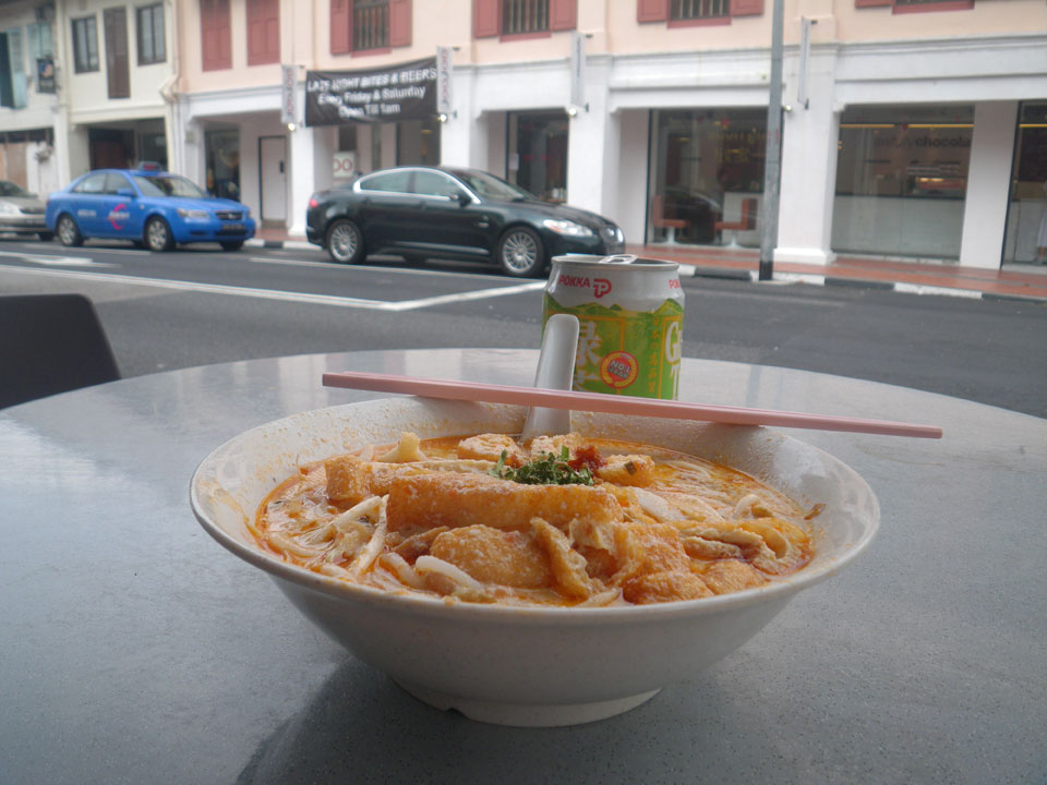 Auf dem Rückweg hatte ich wieder die Katong Laksa. Nebenan gab’s eine Schokotorte und Cappuccino von JooJoo. Mit der GST und Service Charge doch ganz schön teuer.