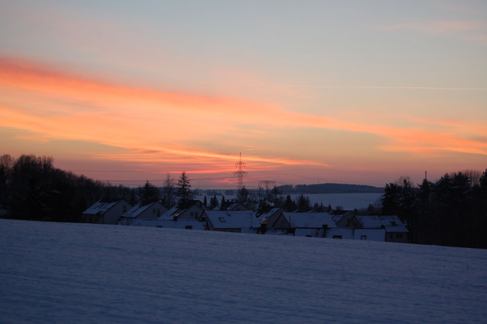Der Jetlag schlägt irgendwie zu. Spät raus und relativ früh wieder schlafen. Heute gab’s keine Party, nur einen kleinen Spaziergang an’s schneebedeckte Feld.