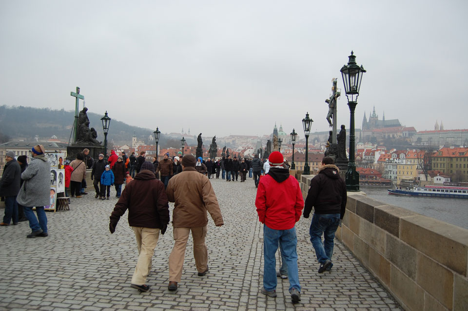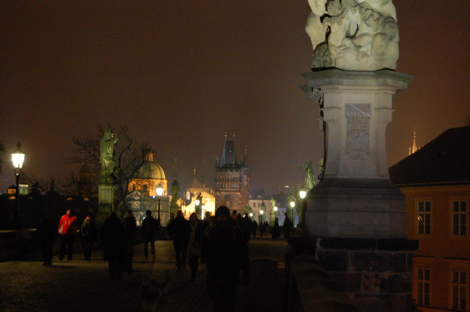 Nebenan ist ein Häagen-Dazs, ein Muffin und Cappiccino zum Frühstück (99 CZK + Tip). Mit der D40 spazierte ich eine gewohnte Runde: Karlsbrücke, Burg und auf der anderen Seite wieder zurück. Wieder ein Cappuccino und chillen mit einbrechender Dunkelheit.