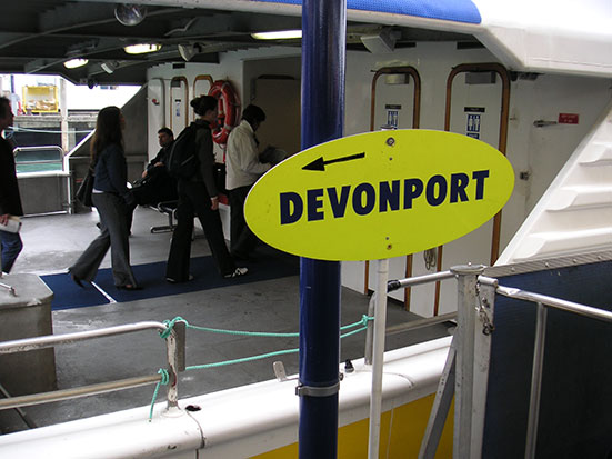 Gegen 16:30 bin ich los zum Fährhafen. Ich wollte nach Devonport fahren. Die Insel sehe ich ja aus dem Fenster und so kaufte ich mir ein Rountrip-Ticket (NZ$ 9). Die Fähre kam dann auch gleich und los gings. Nach dem Ausparken beschleuinigte das Schiff und legte vielleicht 10 Minuten später in Devonport an.