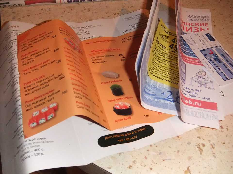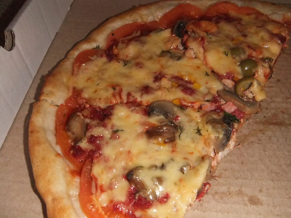 Zu Hause nahm ich mir die Freiheit und ließ Pizza bestellen. Die gleiche, wie letzte Woche. Es schmeckte gut und kam mit einer menge Werbung – will etwas mehr Abwechslung.