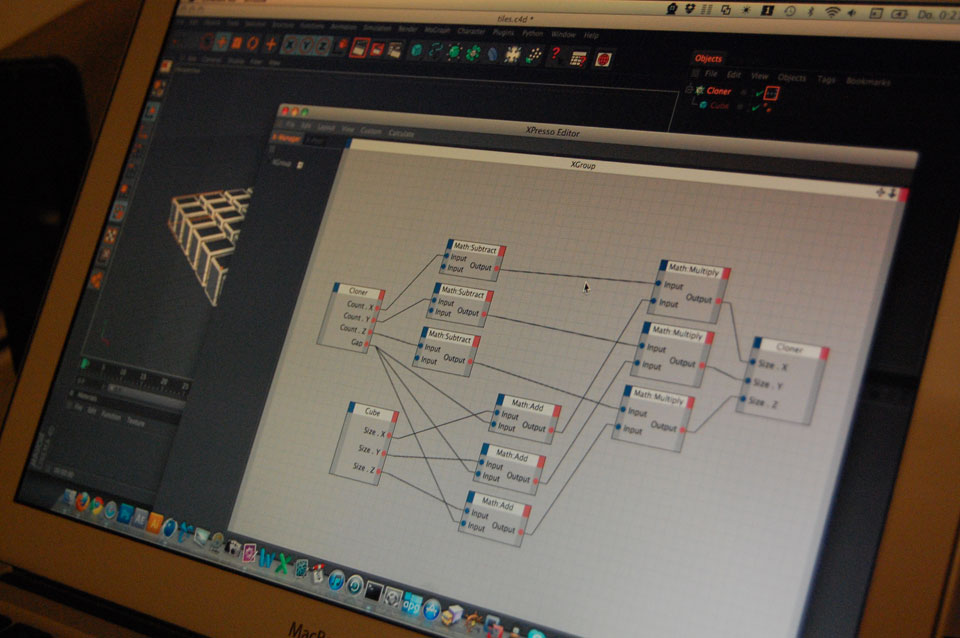 Dann baute ich eine XPresso in Cinema 4D nach, womit man einfacher Tiles erstellen kann. Vielleicht kann ich das noch mit Bitmap und Transparenz versehen.