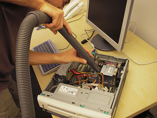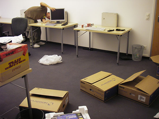 Wir saugten den Staub aus den PCs, ich steckte die RAMs um. In jedem sind jetzt 512 MB. Das reicht auch locker für XP Pro. Wunderbar.