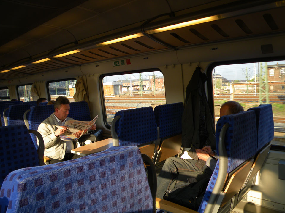 Es wurde voll. Ich fand ein Abteil und plauderte mit einem älteren Mann aus Senftenberg. Ich hatte keine Platzkarte, er hatte eine aber hier waren wohl schon viele Leute im Abteil, die ihre Sachen platziert hatten. Nach der Abfahrt kamen sie auch. Es sollten 5 Leute sein, na dann wieder raus.