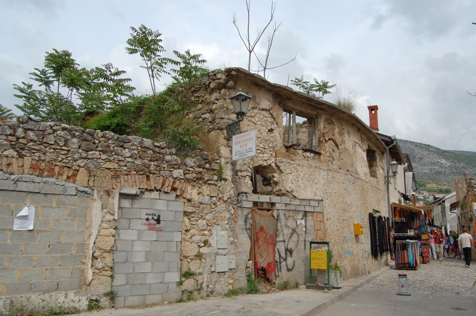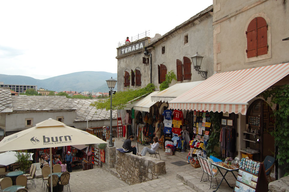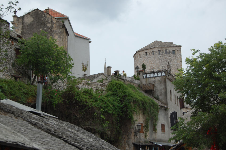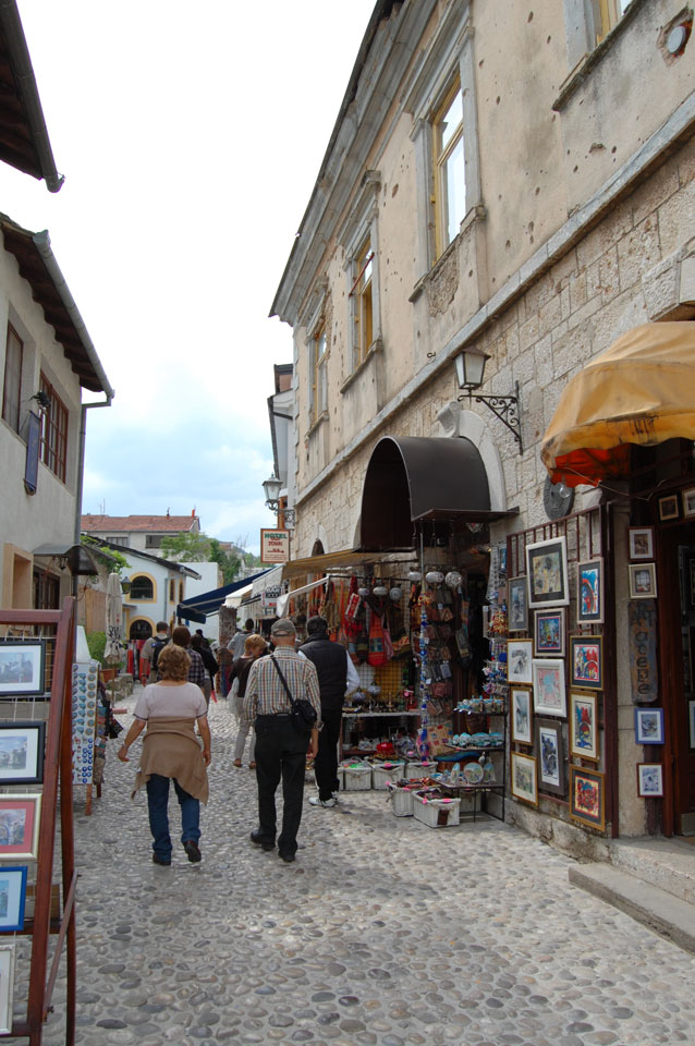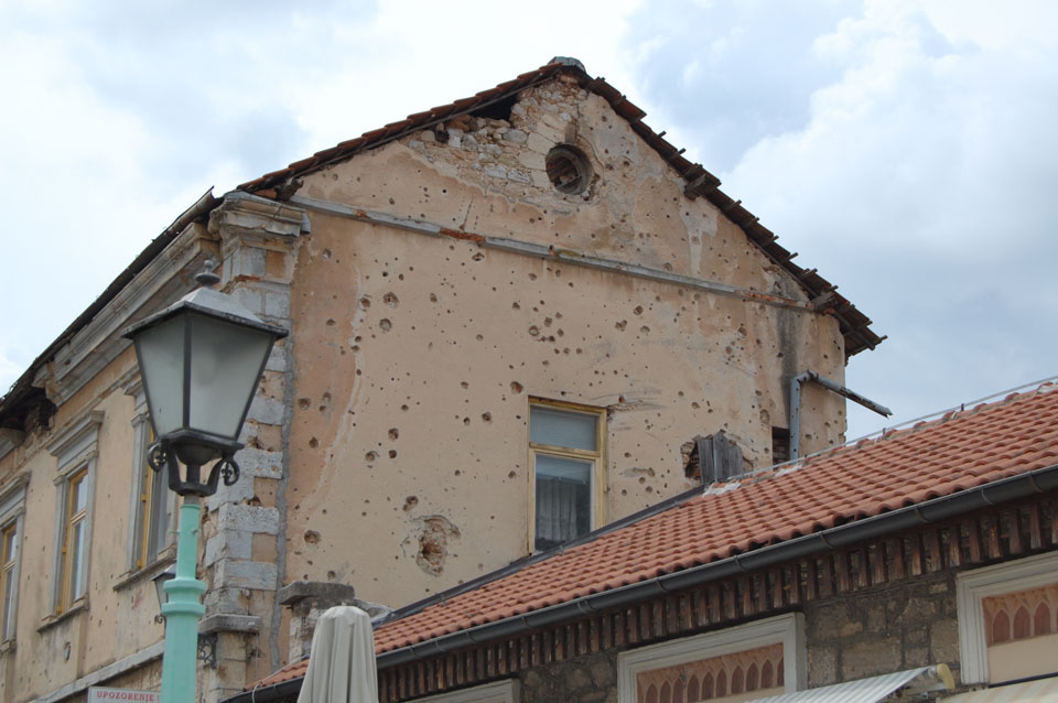 Ich wanderte weiter durch die Straßen an vielen Geschäften vorbei, hatte Burek zum Mittag und fand noch andere Aussichtspunkte. Außerhalb der Altstadt sieht es teilweise sehr heruntergekommen aus. Viele Häuser sind noch nicht wieder renoviert worden, scheinen ausgebrannt oder waren voller Schusslöcher.