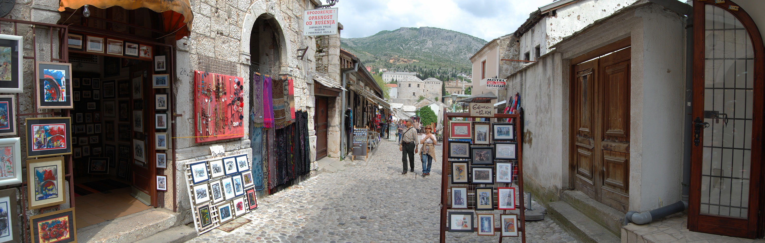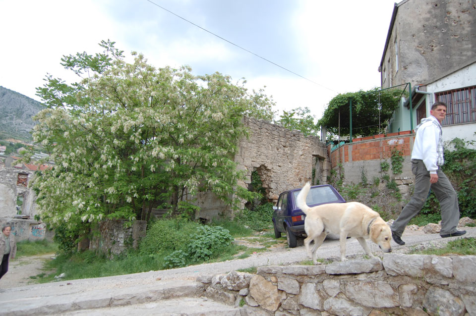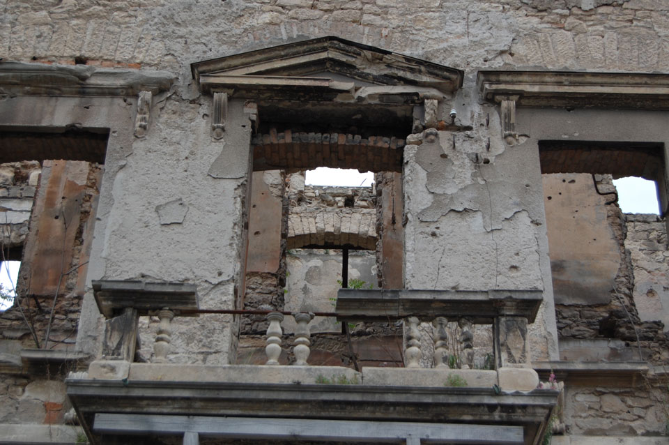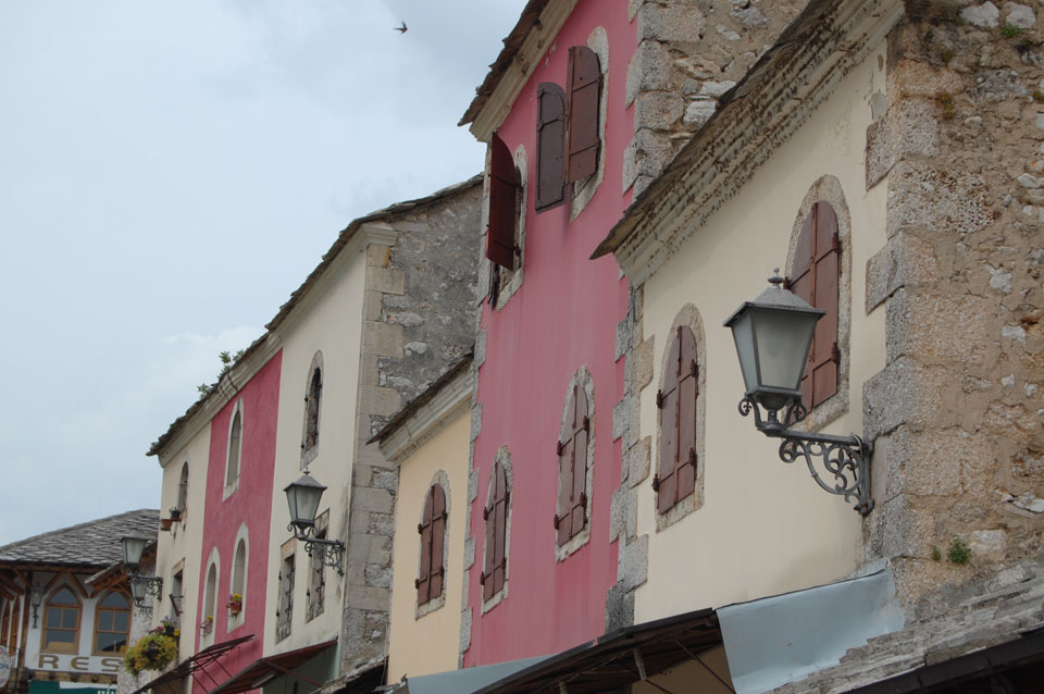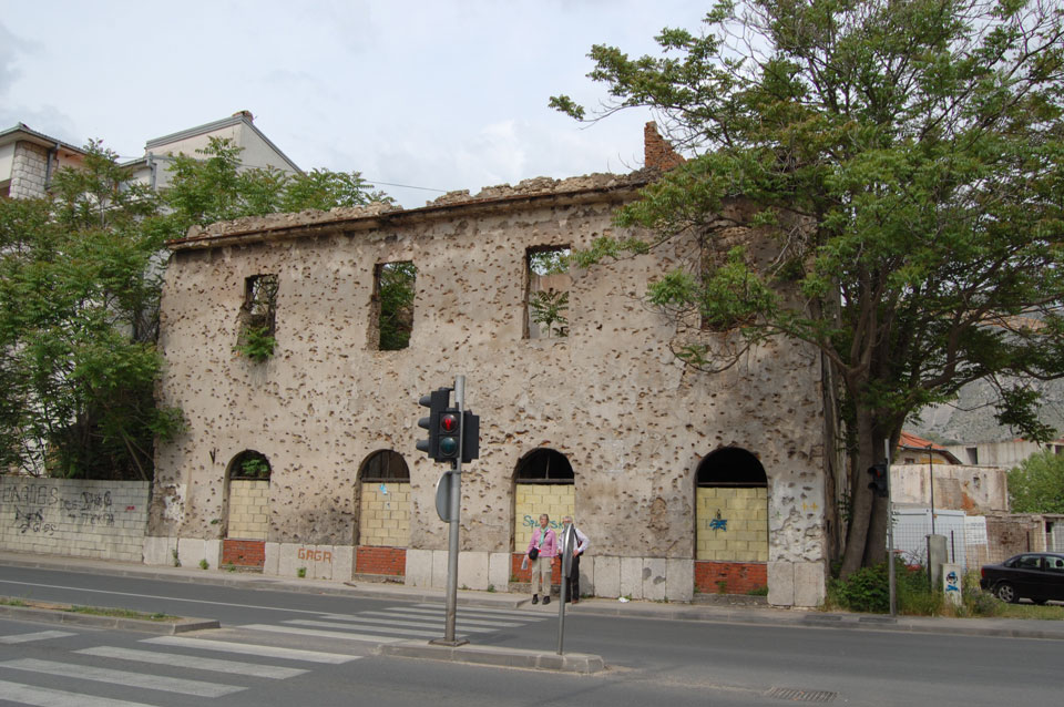 Ich wanderte weiter durch die Straßen an vielen Geschäften vorbei, hatte Burek zum Mittag und fand noch andere Aussichtspunkte. Außerhalb der Altstadt sieht es teilweise sehr heruntergekommen aus. Viele Häuser sind noch nicht wieder renoviert worden, scheinen ausgebrannt oder waren voller Schusslöcher.