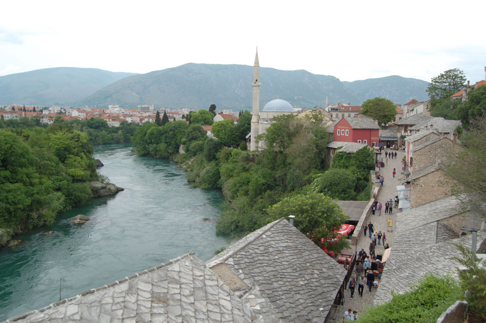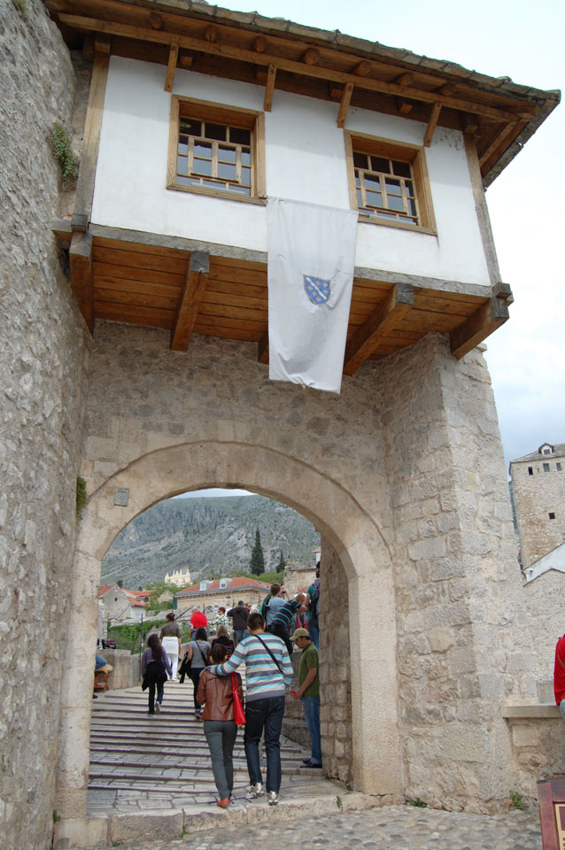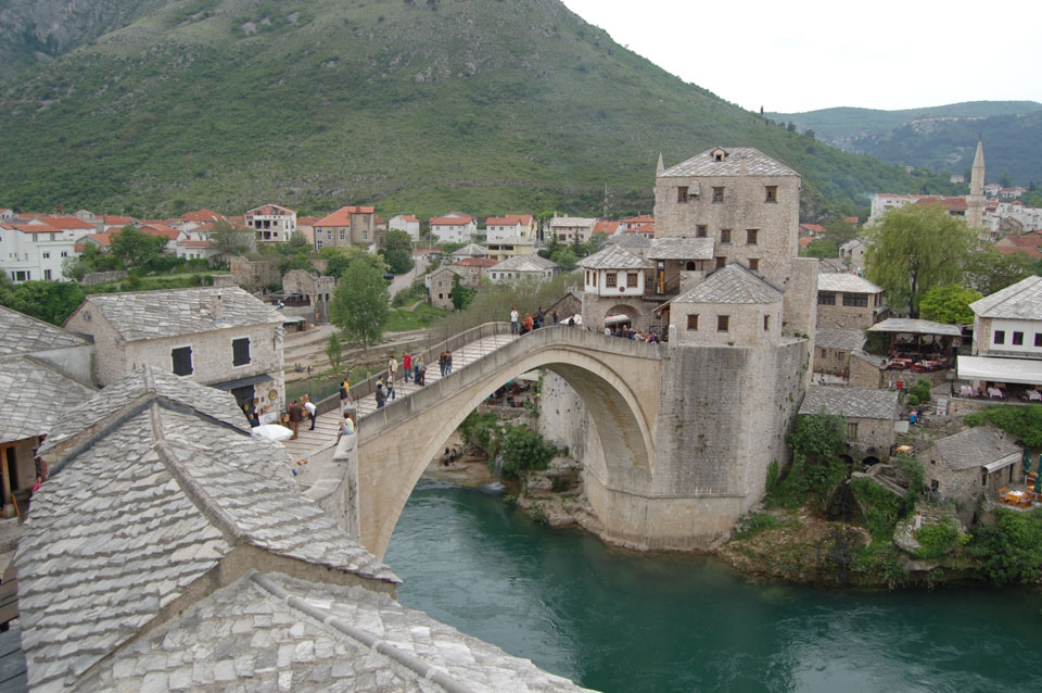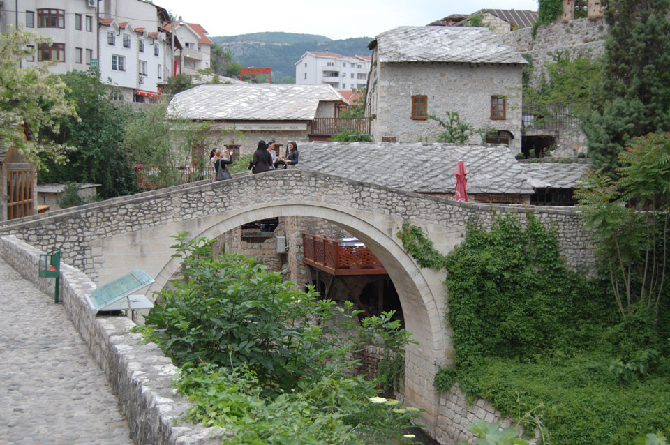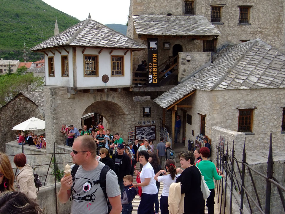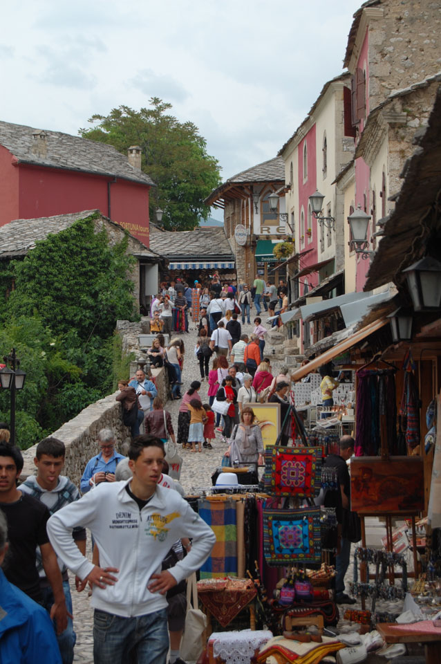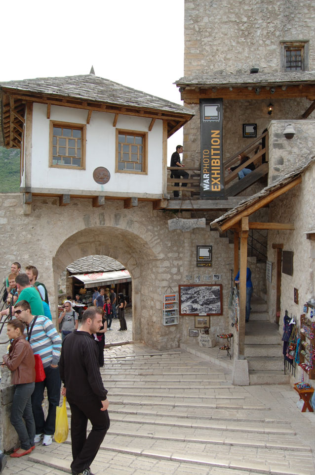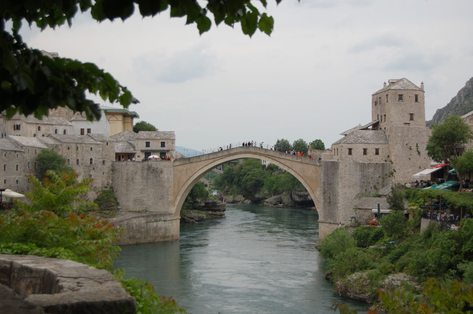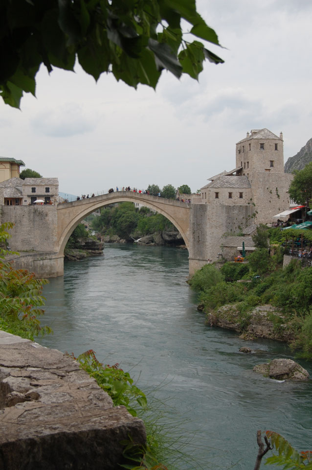 Die Altstadt war nicht weit. Auf der berühmten Brücke, die während des Balkan-Krieges zerstört wurde, waren jetzt viele Touristen und auch ein paar Anwerber für Spenden eines Springers. Die 21m hohe Brücke sieht ziemlich hoch aus. Dann sprang einer und ich hatte es auf Video. Respekt!