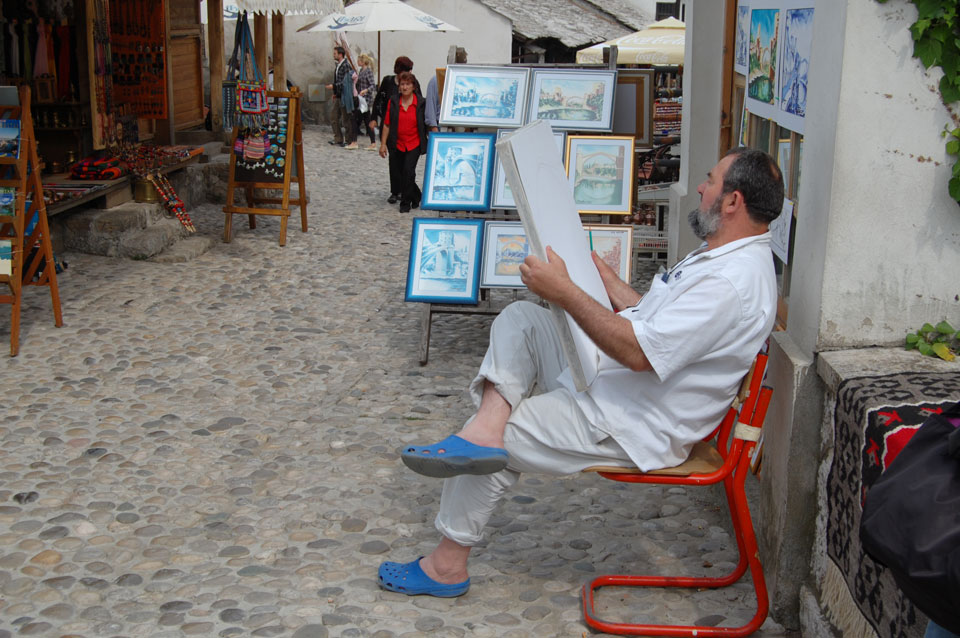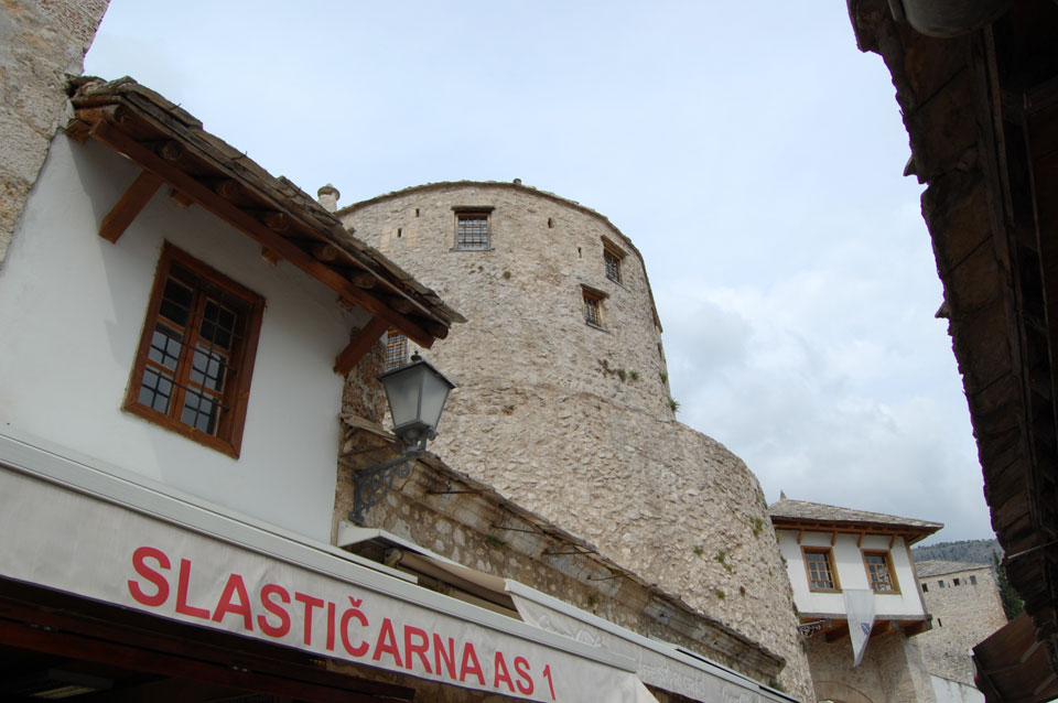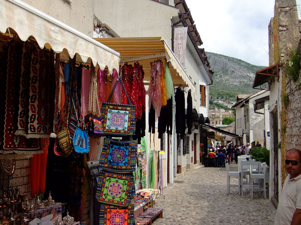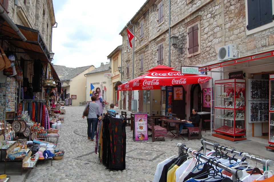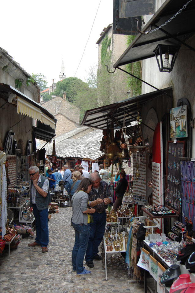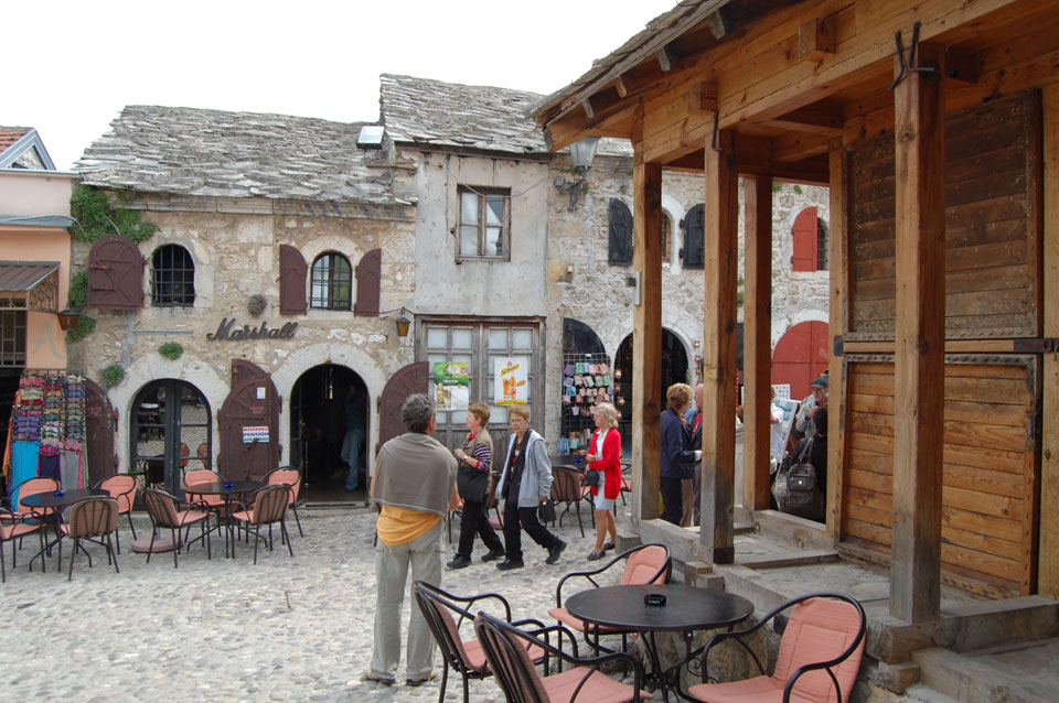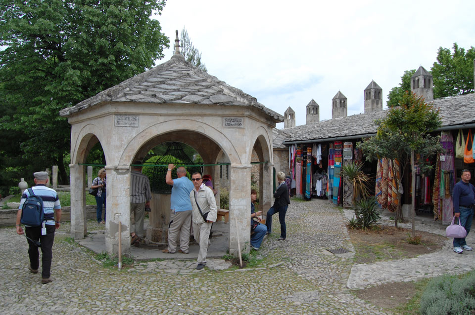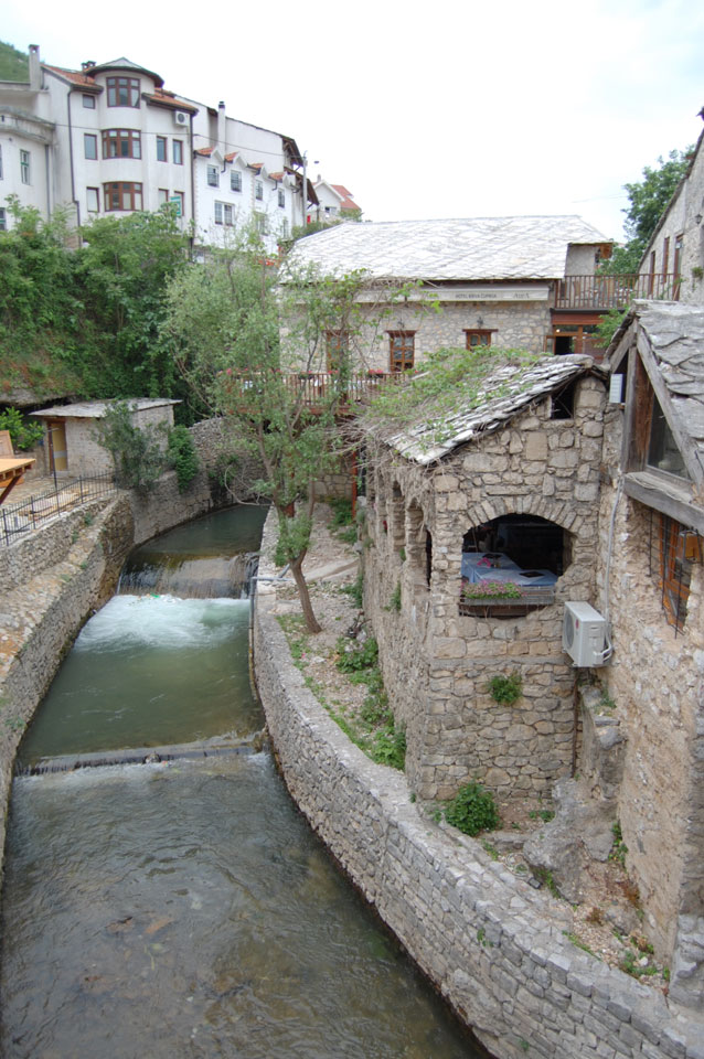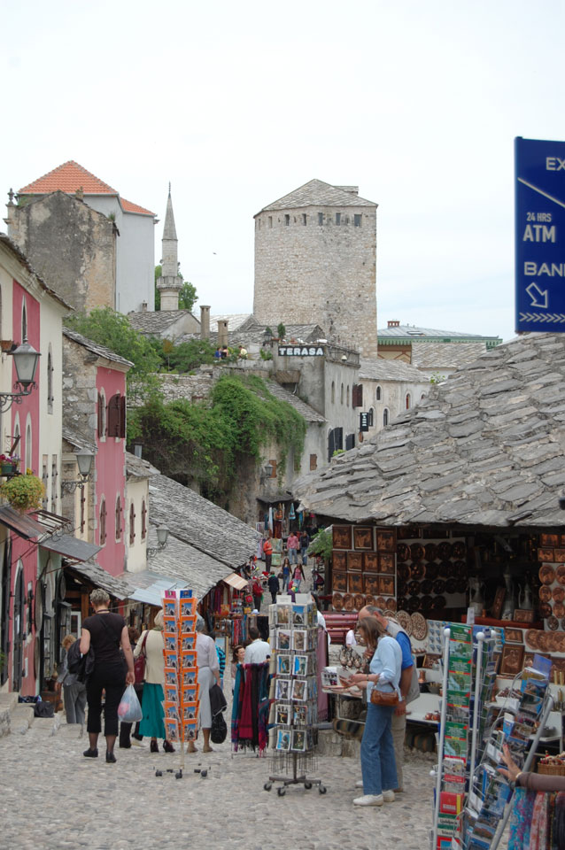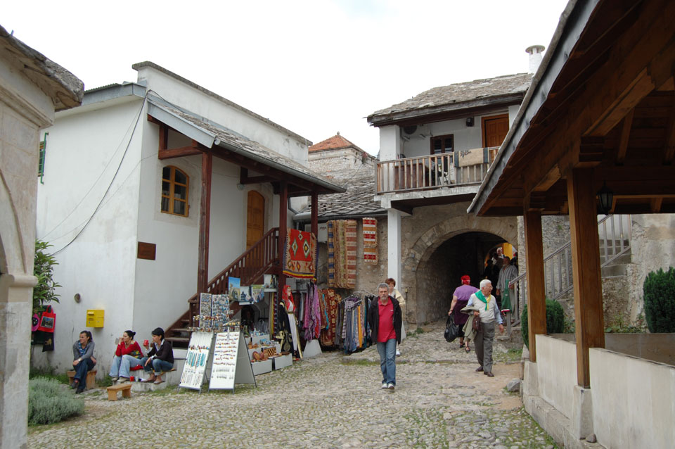 Die Altstadt war nicht weit. Auf der berühmten Brücke, die während des Balkan-Krieges zerstört wurde, waren jetzt viele Touristen und auch ein paar Anwerber für Spenden eines Springers. Die 21m hohe Brücke sieht ziemlich hoch aus. Dann sprang einer und ich hatte es auf Video. Respekt!
