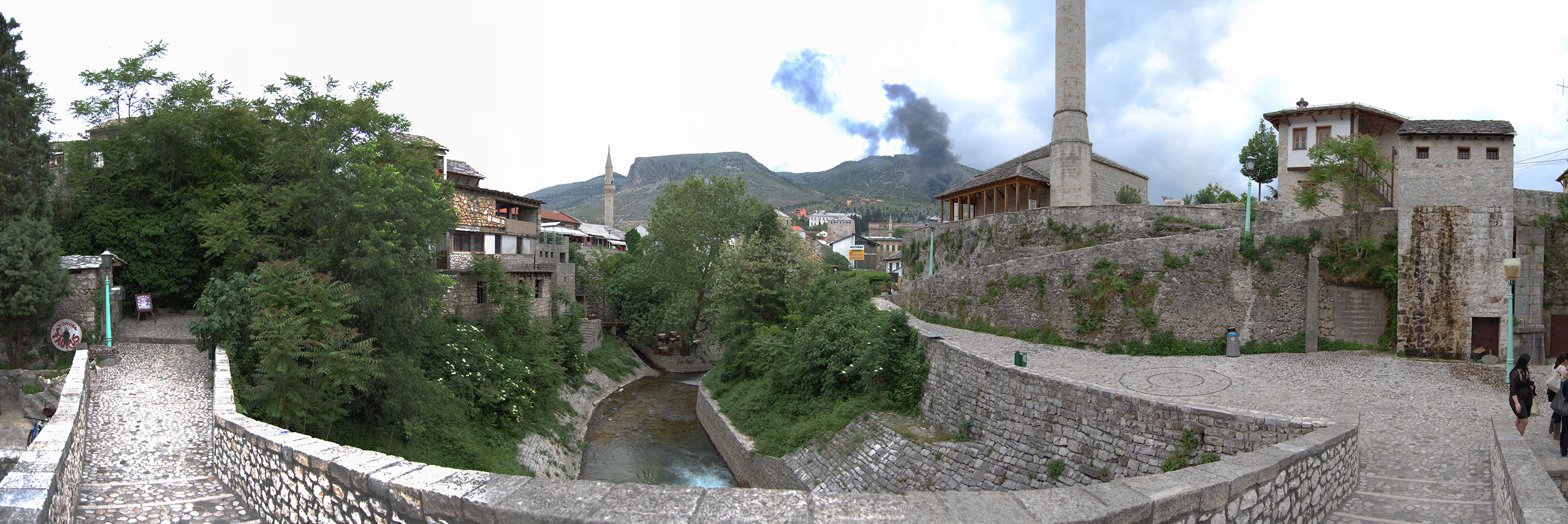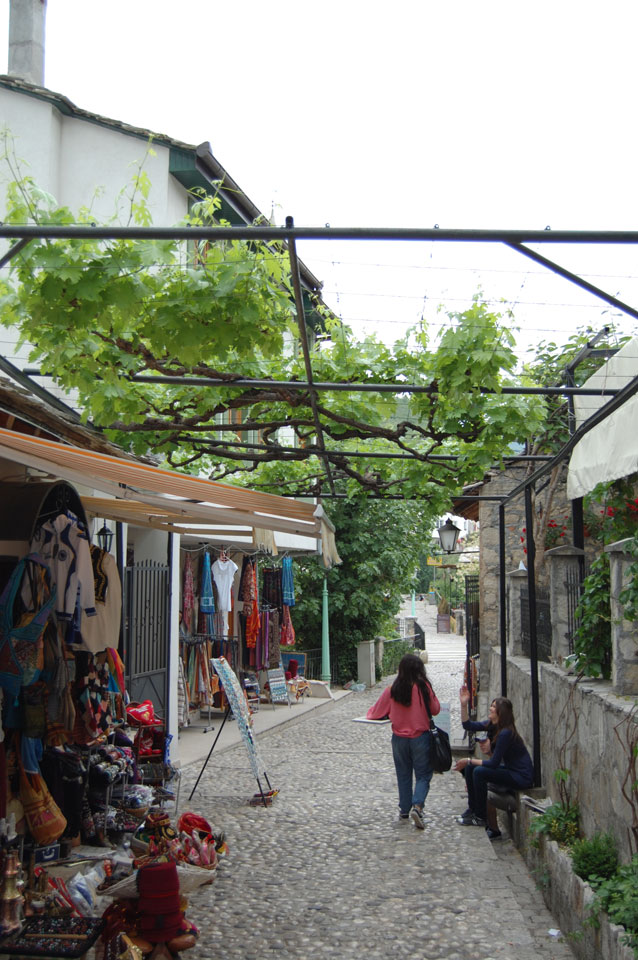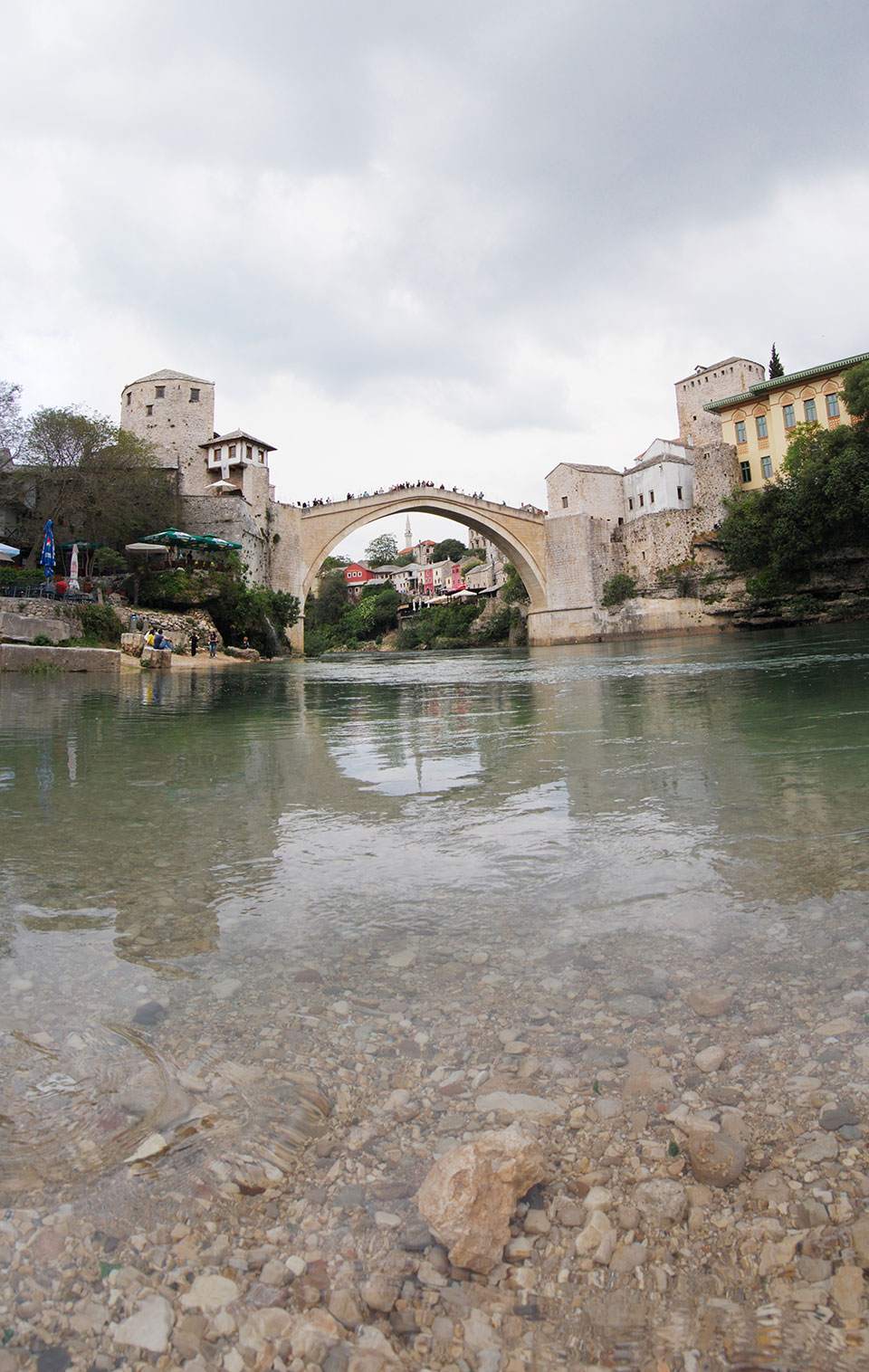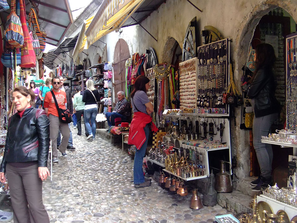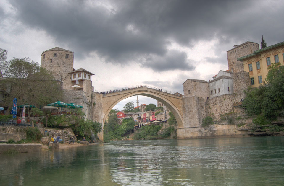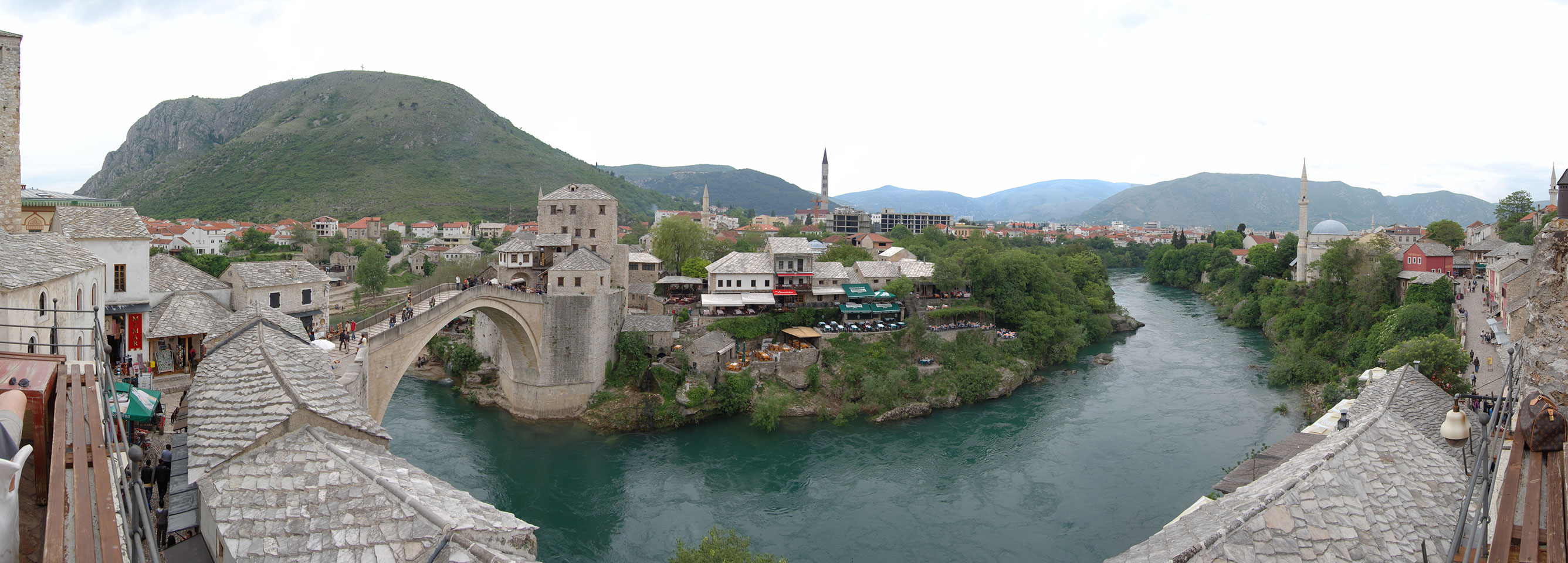 Die Altstadt war nicht weit. Auf der berühmten Brücke, die während des Balkan-Krieges zerstört wurde, waren jetzt viele Touristen und auch ein paar Anwerber für Spenden eines Springers. Die 21m hohe Brücke sieht ziemlich hoch aus. Dann sprang einer und ich hatte es auf Video. Respekt!