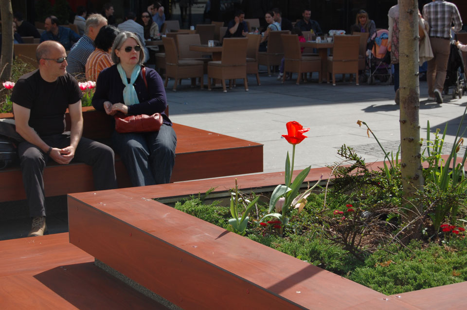 Das Wetter war super. Sonne satt und warm! Ich holte mir ein Stück Kuchen in der Bäckerei. Kaffee gibt’s da nicht, nur Joghurt.