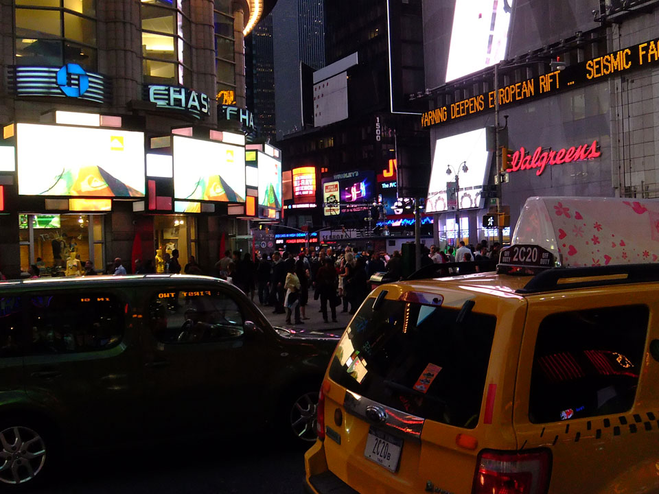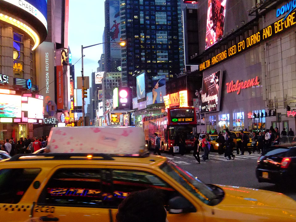 Ich holte mir ’ne TomYum Suppe, ging zum immer beeindruckenden Times Square und fuhr mit der Metro wieder zurück zu 103rd. Eigentlich wollte ich noch etwas joggen doch jetzt mit der Dunkelheit gegen 8 legte ich mich lieber kurz hin.