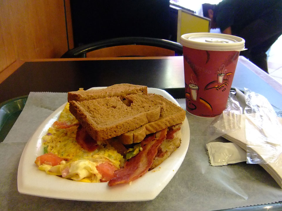Kurz nach 11 war ich fertig, packte noch den Rest und gab den Schlüssel ab. Eigentlich ein gutes Hostess. Ich kaufte ein Souvenir-Magneten für jemanden, machte Frühstück im gleichen Foodcourt wie gestern.
