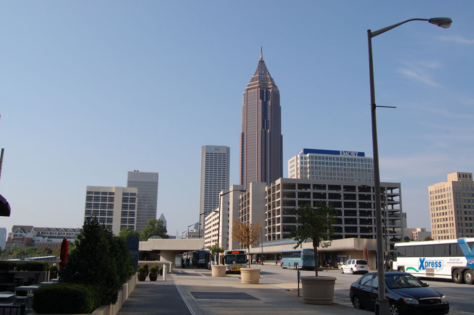Mit 3 1/2 Stunden Verspätung kam der Zug in Atlanta an. Drinnen hatte ich Pullover und Jack an, jetzt draußen war es warm. Mit dem Taxi ging’s nach Downtown in’s Hilton, einchecken und locker.