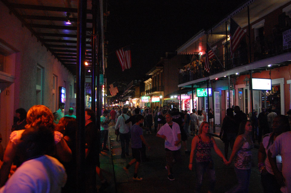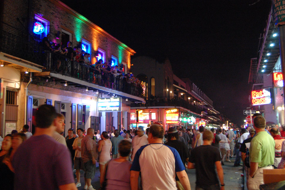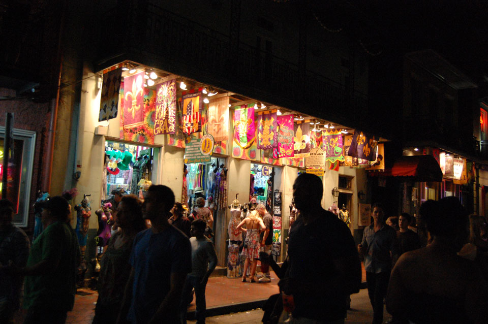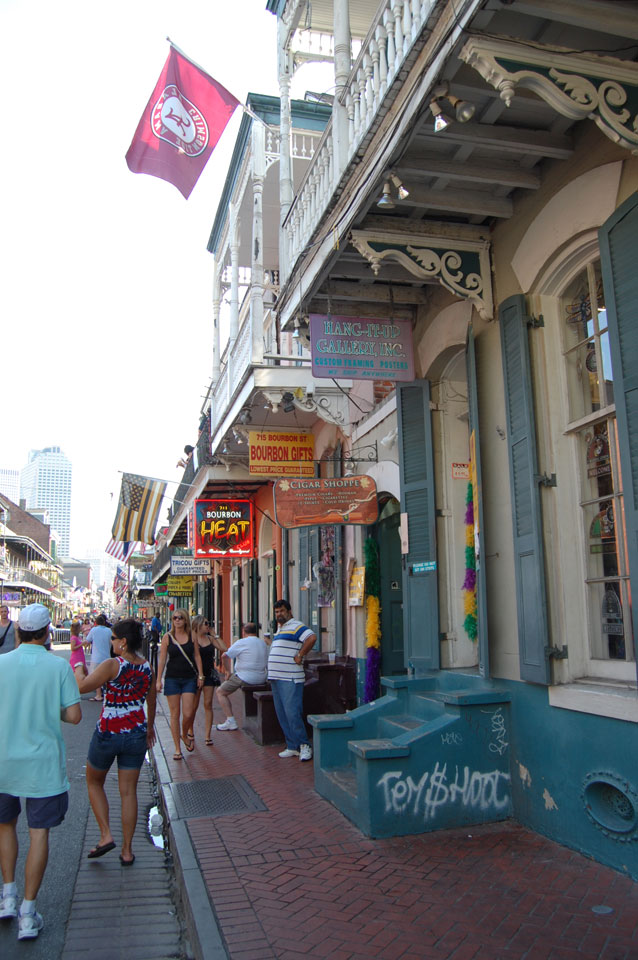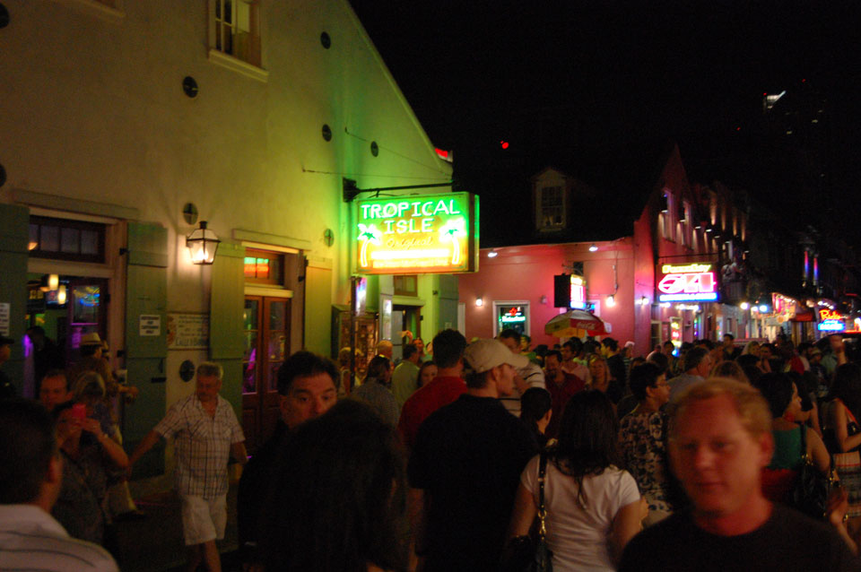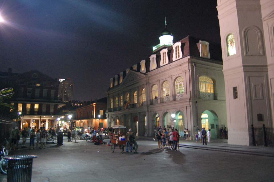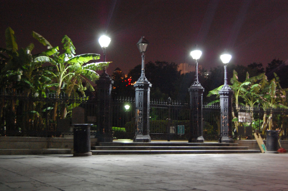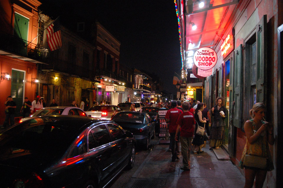 Ein Typ redete extrem viel irres Zeug über diverse fiktive und reale Geistergeschichten. So richtig gruselig war das alles nicht, bis auf’s letzte Haus, wo ein verrückter Arzt und eine merkwürdige Frau ihre Sklaven mißhandelten und wohl Horror-Operationen an denen durchführten. Das war schon heftig, alle müde vom vielen Laufen und Stehen. Nach 2 Stunden war’s dann vorbei und mit der D40 konnte ich auch ein paar bessere Nachtaufnahmen der Bourbon Street schießen. Hier fühlt man eher Geschichte als in so vielen anderen US-Städten. Echt nett.