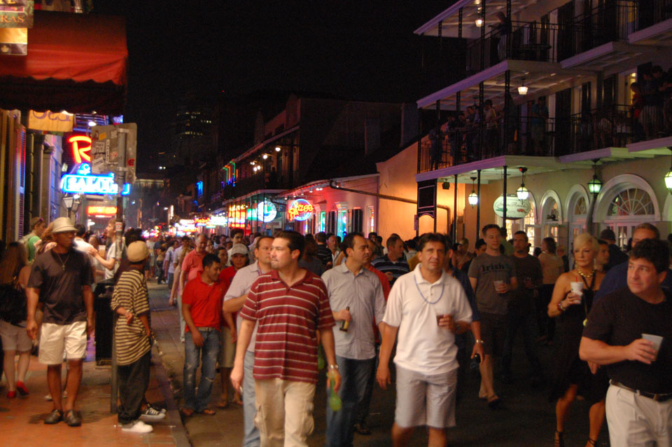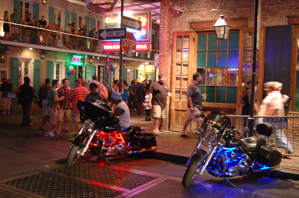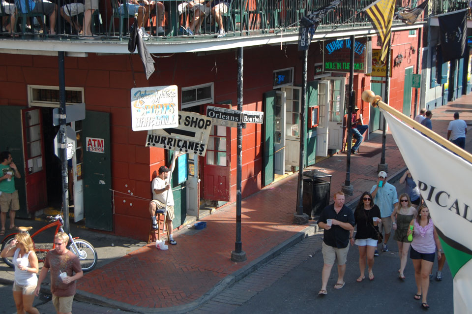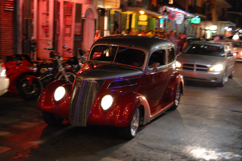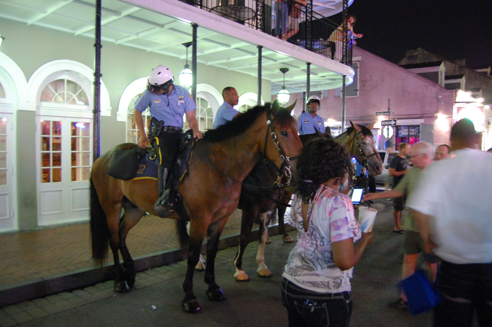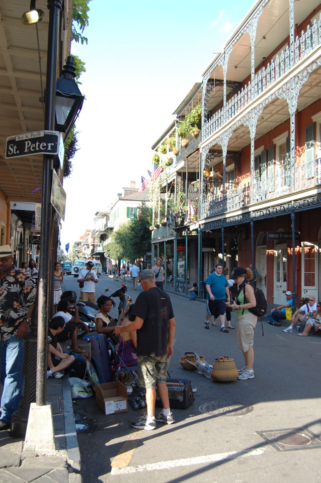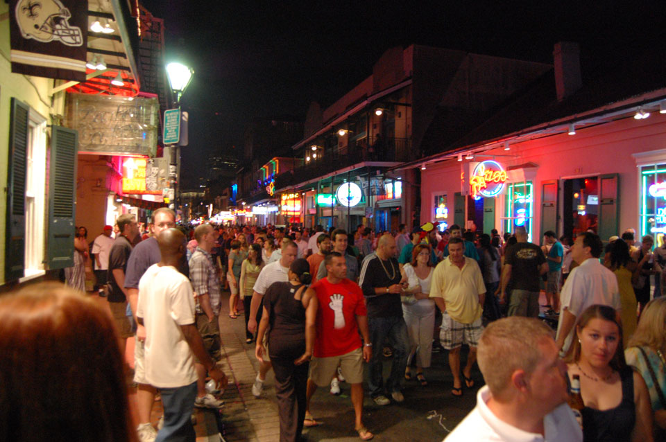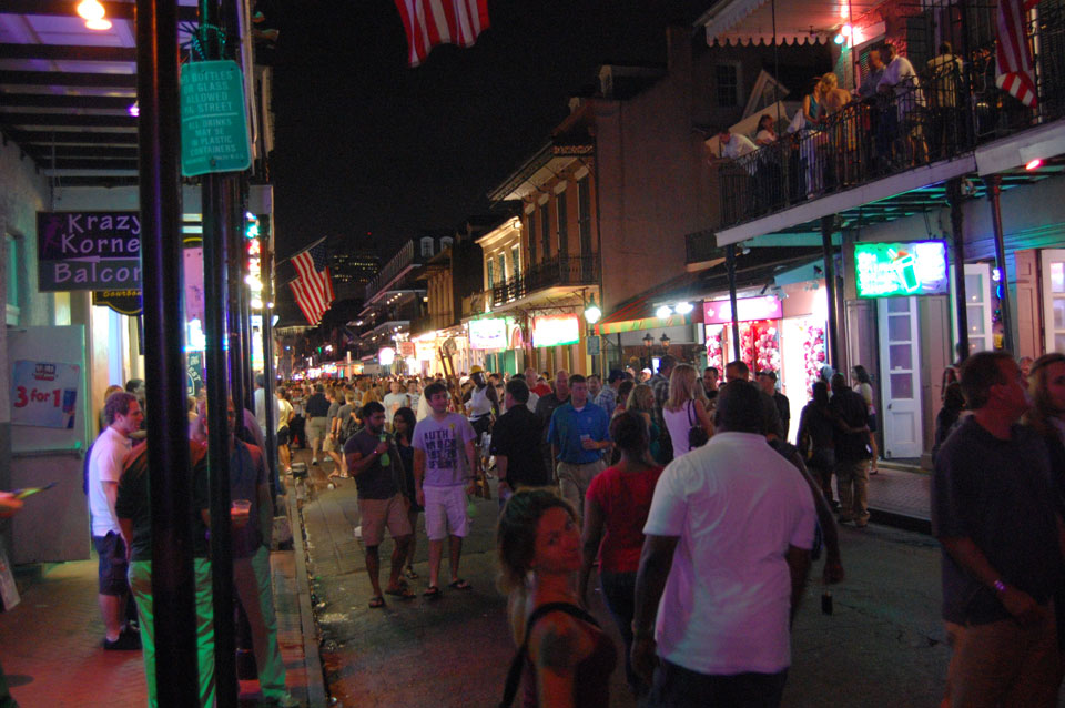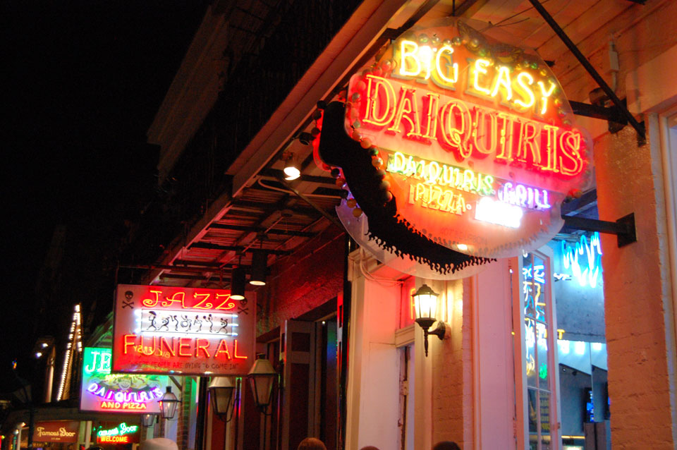 Ein Typ redete extrem viel irres Zeug über diverse fiktive und reale Geistergeschichten. So richtig gruselig war das alles nicht, bis auf’s letzte Haus, wo ein verrückter Arzt und eine merkwürdige Frau ihre Sklaven mißhandelten und wohl Horror-Operationen an denen durchführten. Das war schon heftig, alle müde vom vielen Laufen und Stehen. Nach 2 Stunden war’s dann vorbei und mit der D40 konnte ich auch ein paar bessere Nachtaufnahmen der Bourbon Street schießen. Hier fühlt man eher Geschichte als in so vielen anderen US-Städten. Echt nett.
