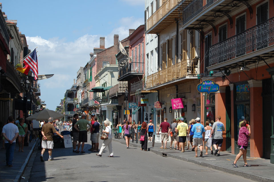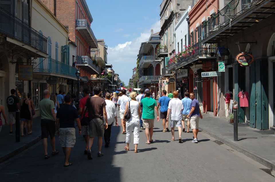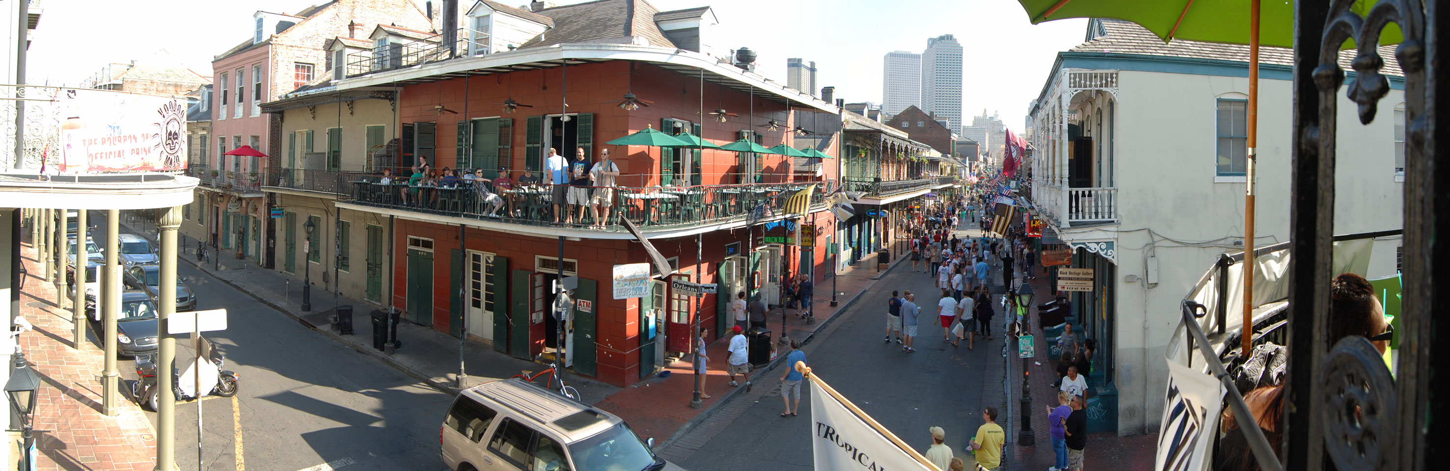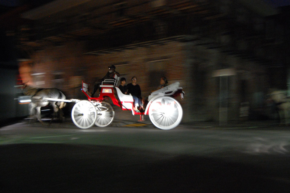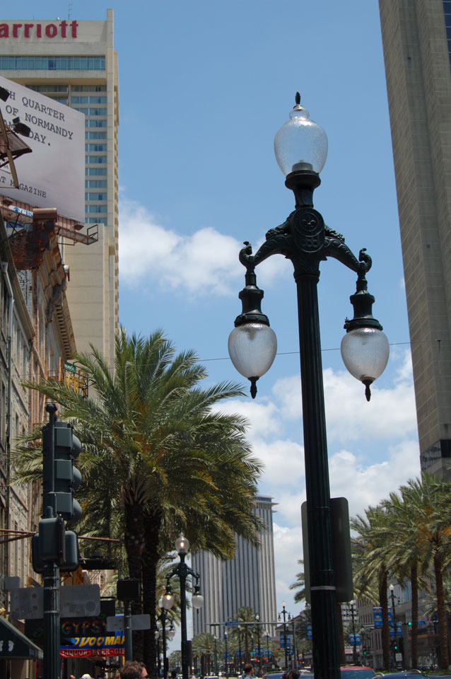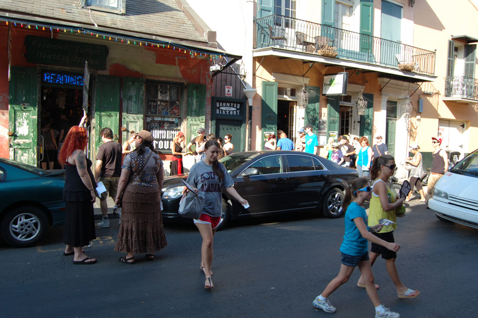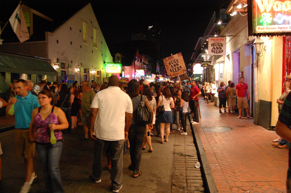 Ein Typ redete extrem viel irres Zeug über diverse fiktive und reale Geistergeschichten. So richtig gruselig war das alles nicht, bis auf’s letzte Haus, wo ein verrückter Arzt und eine merkwürdige Frau ihre Sklaven mißhandelten und wohl Horror-Operationen an denen durchführten. Das war schon heftig, alle müde vom vielen Laufen und Stehen. Nach 2 Stunden war’s dann vorbei und mit der D40 konnte ich auch ein paar bessere Nachtaufnahmen der Bourbon Street schießen. Hier fühlt man eher Geschichte als in so vielen anderen US-Städten. Echt nett.