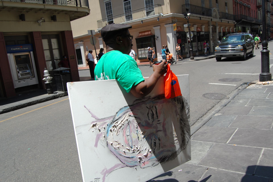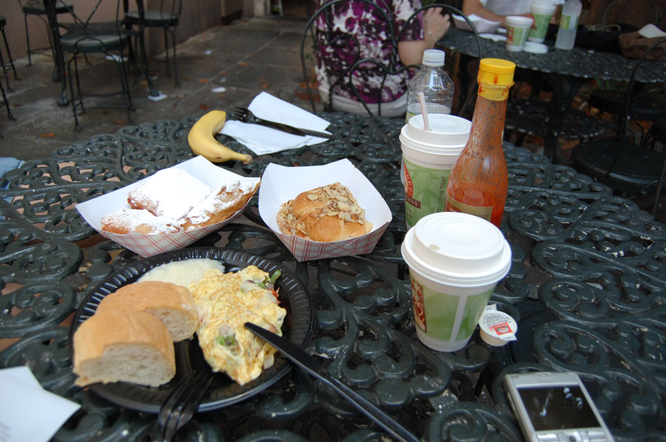 Frühstück bis 10 verpasst, dafür aber halbwegs munter – nicht ganz. So war ich dann im Café Beignet mit Western Omelette, Beignets und Cappuccino. Alles super, guter Start. Die Royal Street runter ist etwas anders. Statt Bars, wie auf der Bourbon Street, sind hier die Gallerien.