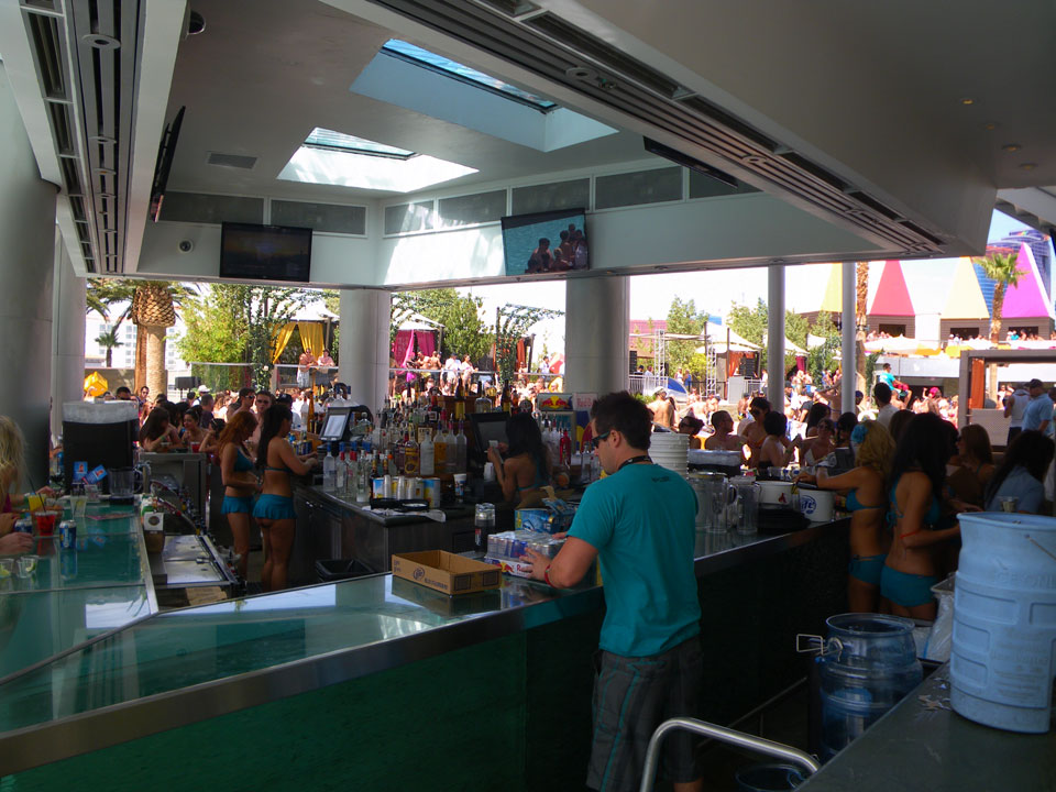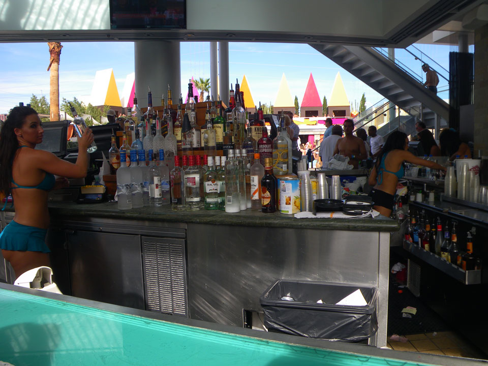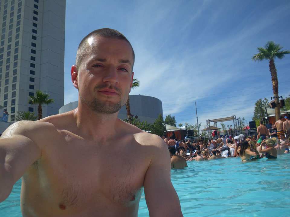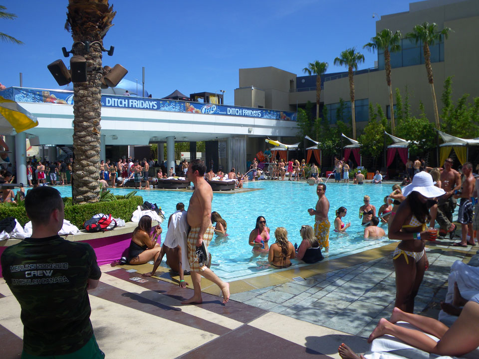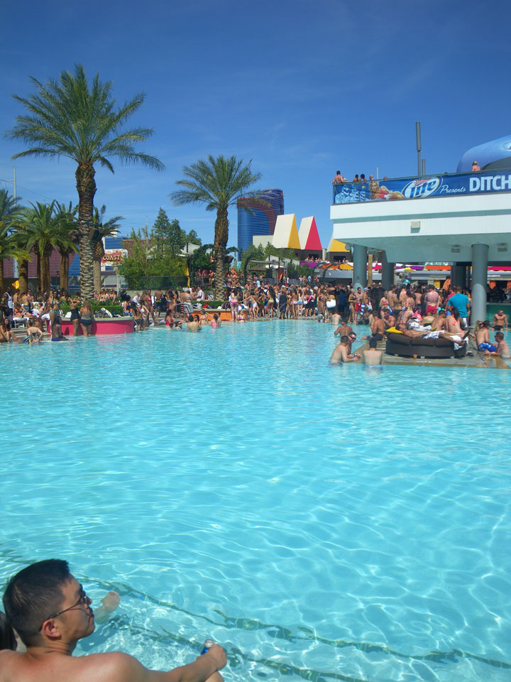Es ging zum Palms zur Poolparty, vorher aber noch ein kurzer Haarschnitt. Der erste Shop war geschlossen und wohl pleite, die Koreanerin weiter oben verlangte deftige $18, mit Tip also $20 für ’nen Maschinenschnitt.