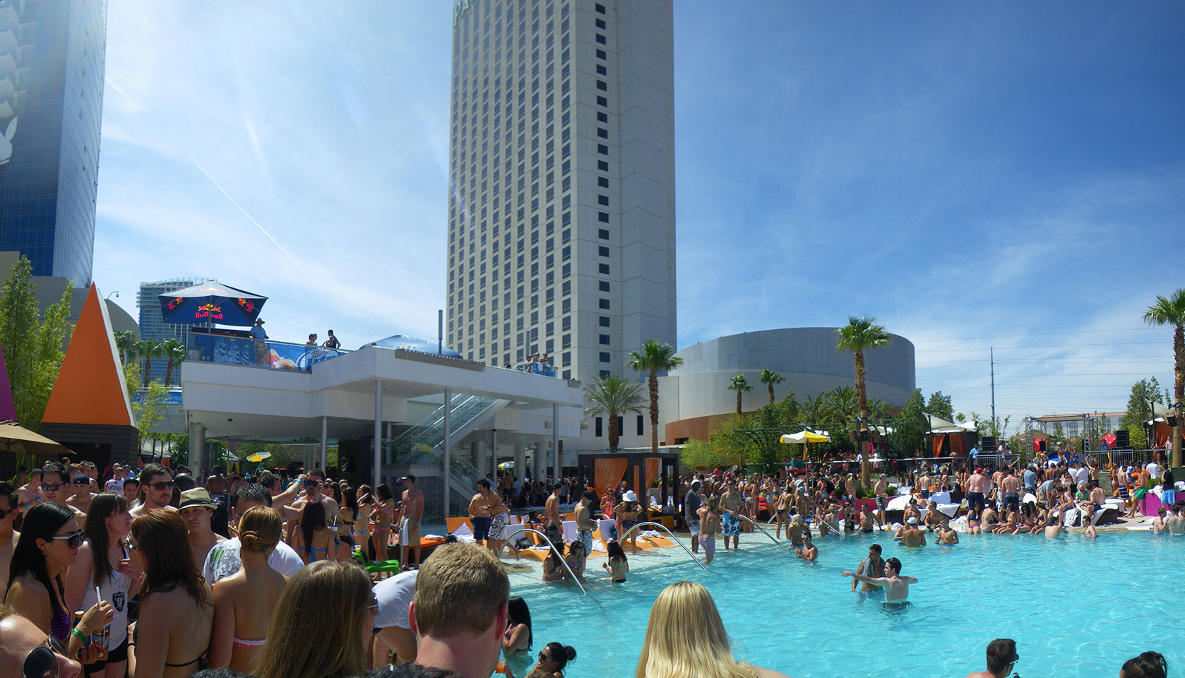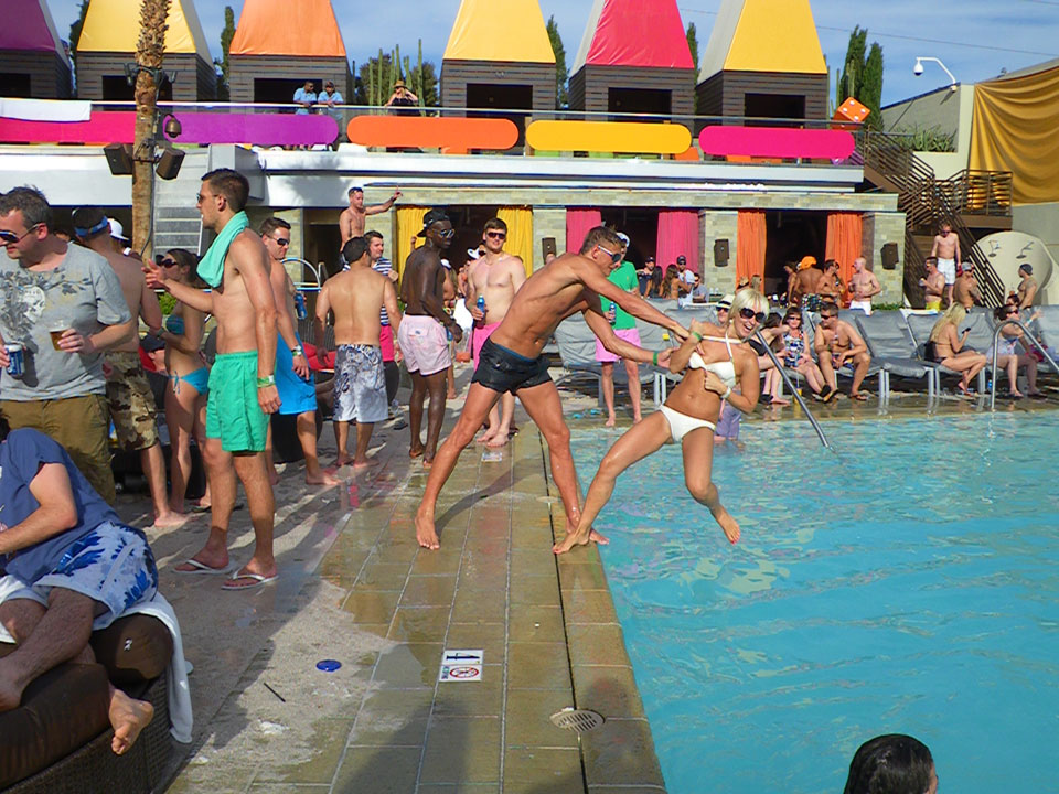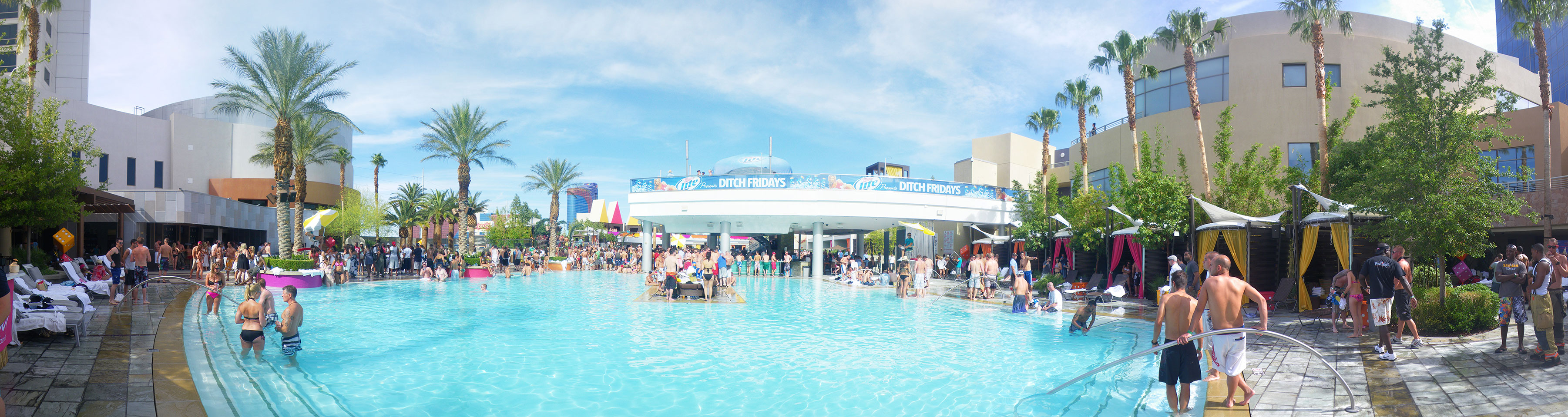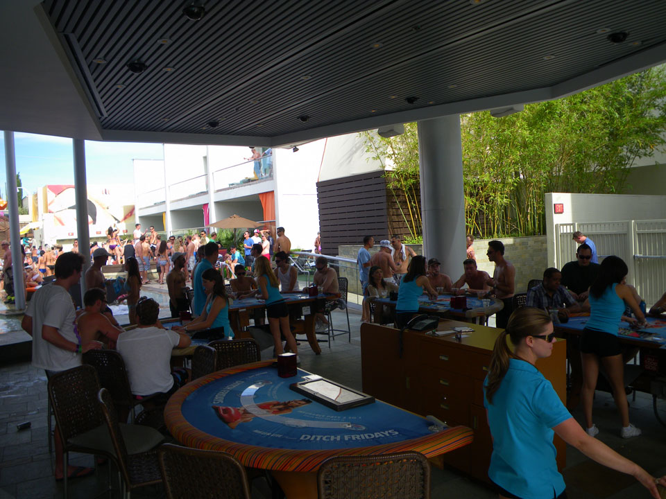 Es ging zum Palms zur Poolparty, vorher aber noch ein kurzer Haarschnitt. Der erste Shop war geschlossen und wohl pleite, die Koreanerin weiter oben verlangte deftige $18, mit Tip also $20 für ’nen Maschinenschnitt.