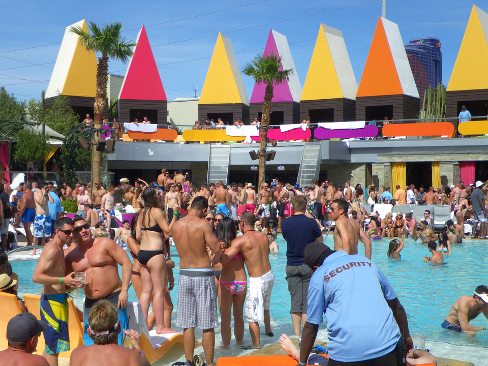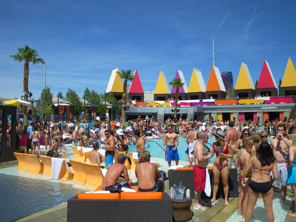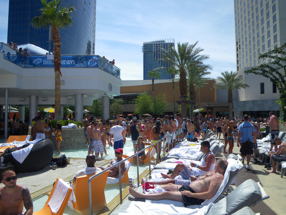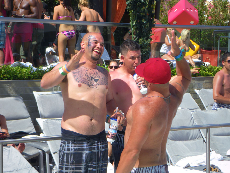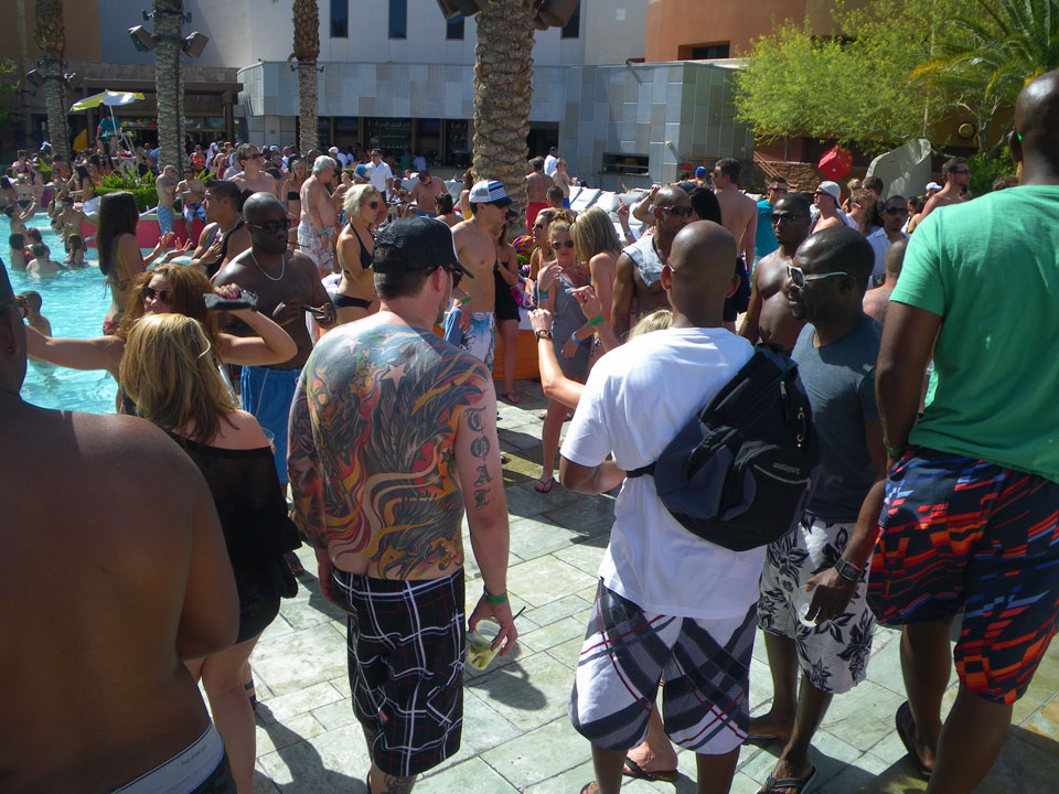 Im Palms dann $30 pro Nase Eintritt für den Pool. Eine Haufen tätowierter und herausgeputzter junger Leute. Mit Sonnencreme war ich gut geschützt, tanzte etwas und verchillte die Zeit. Eine Flasche Wasser (nur das Fiji) kostete $9, ein Körbchen Pommes $10. So ist das eben aber ich mache es nicht jeden Tag, würde das auch nicht jeden Tag wollen. Selten so viele echte Tattoos und Fake auf einmal gesehen.