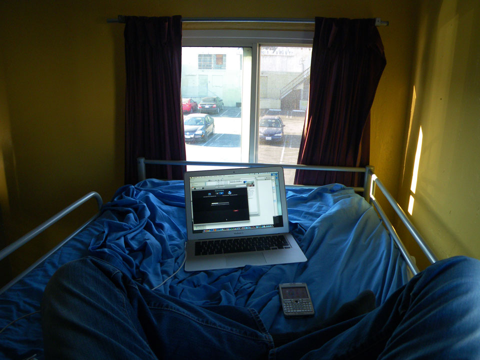 Ich lief in’s Hostel, was nur wenige Minuten auf dem Schrader Blvd lag. Innen war vieles neu, die Betten haben jetzt ein paar Metall-Blenden für etwas Privatsphäre. Das Bett zwar oben aber OK.